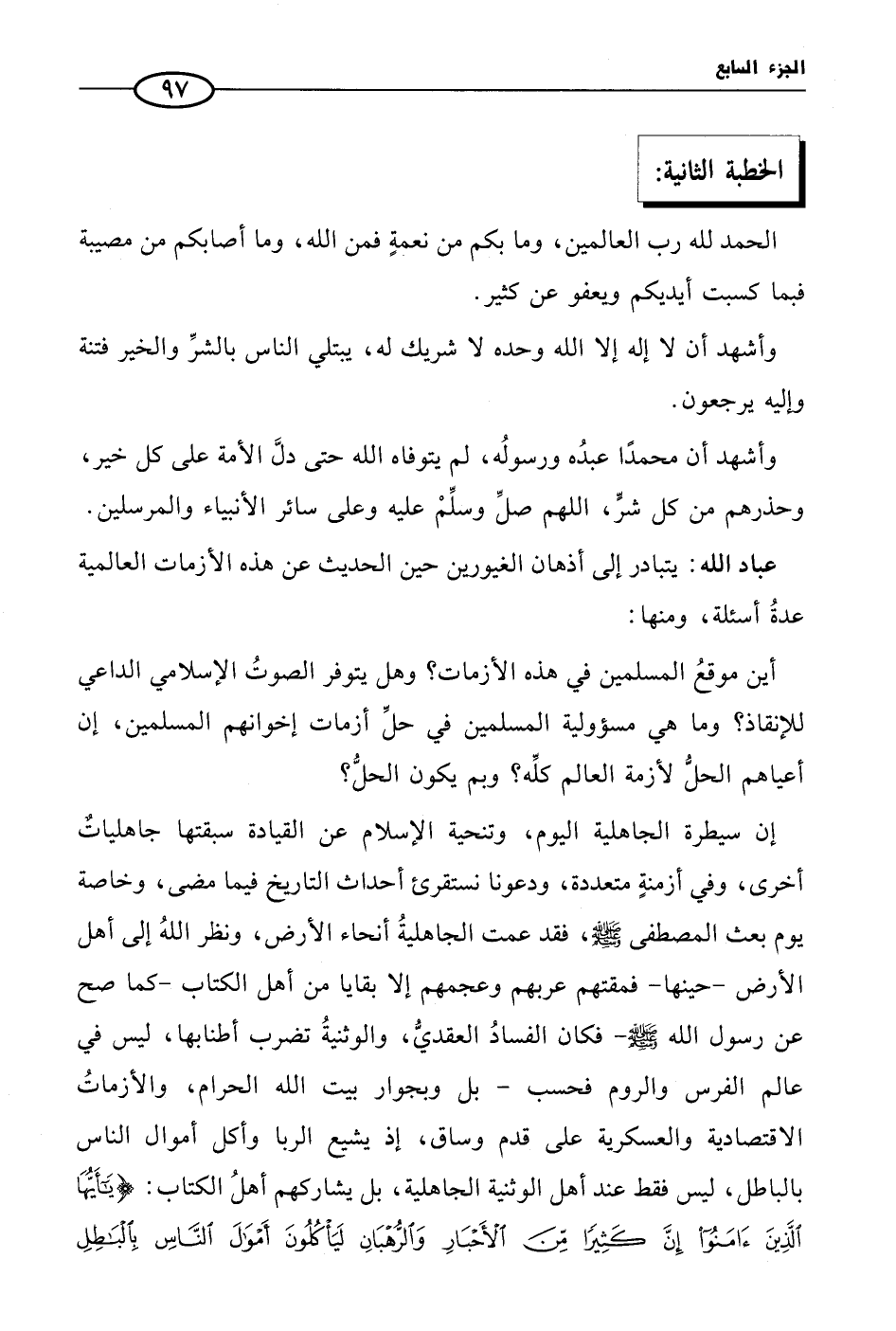 عباد الله: يتبادر إلى أذهان الغيورين حين الحديث عن هذه الأزمات العالمية عدةُ أسئلة، ومنها: