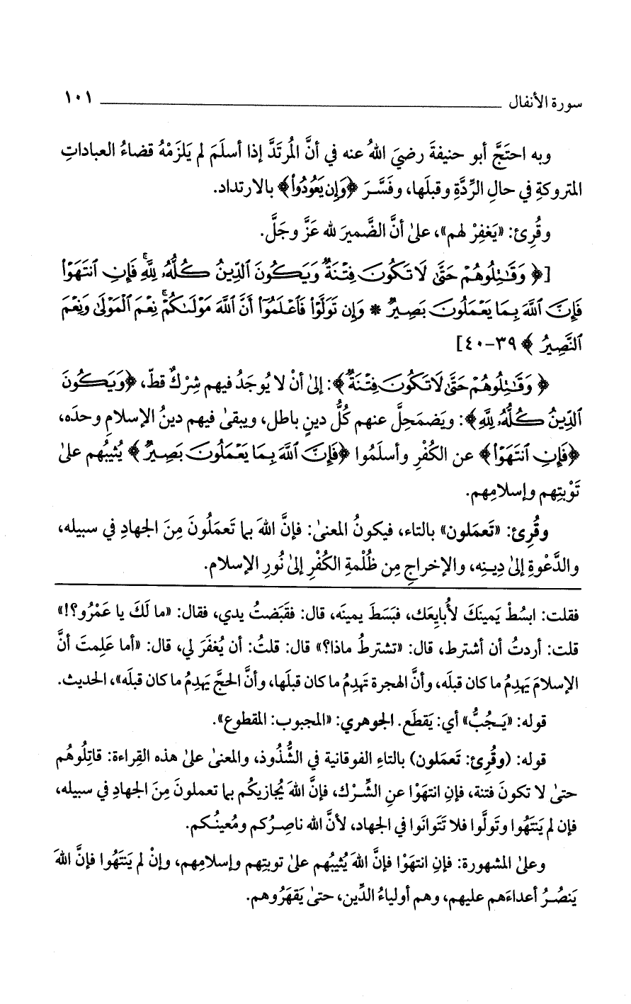[(وَقتِلُوهُم حَتَّى لا تَكُونَ فِتْنَةٌ وَيَكُونَ الدِّينُ كُلُّهُ لِلَّهِ فَإِنِ انْتَهَوْا فَإِنَّ اللَّهَ بِما يَعْمَلُونَ بَصِيرٌ * وَإِنْ تَوَلَّوْا فَاعْلَمُوا أَنَّ اللَّهَ مَوْلكُمْ نِعْمَ الْمَوْلى وَنِعْمَ النَّصِيرُ) 39 - 40]