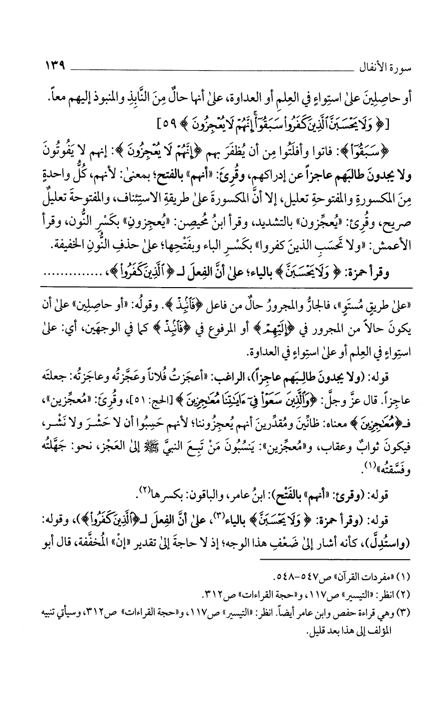 [(وَلا يَحْسَبَنَّ الَّذِينَ كَفَرُوا سَبَقُوا إِنَّهُمْ لا يُعْجِزُونَ) 59]