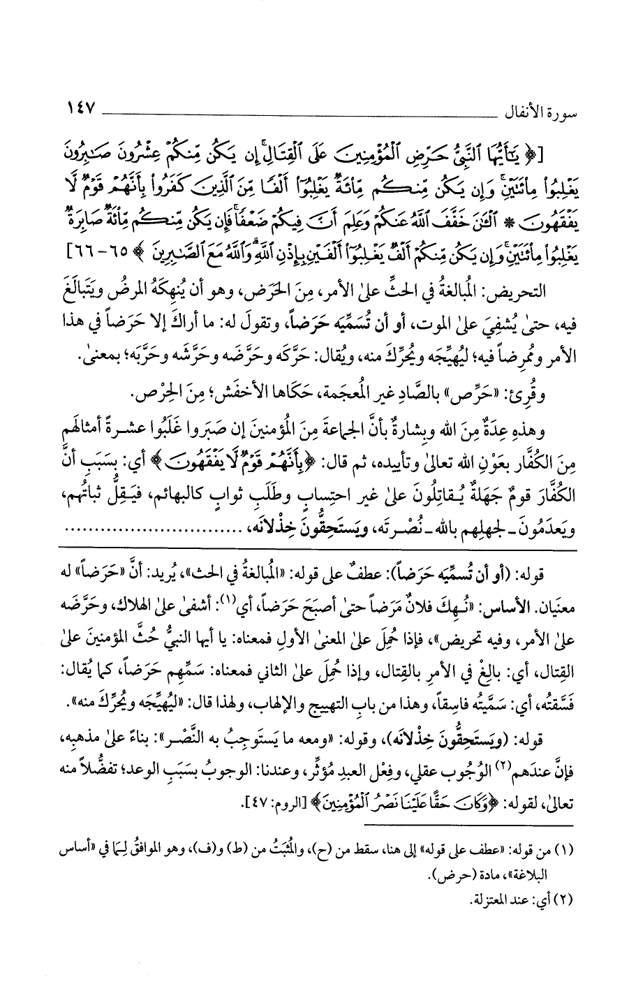 [(يأيُّهَا النَّبِيُّ حَرِّضِ الْمُؤْمِنِينَ عَلَى الْقِتالِ إِنْ يَكُنْ مِنْكُمْ عِشْرُونَ صابِرُونَ يَغْلِبُوا مِائَتَيْنِ وَإِنْ يَكُنْ مِنْكُمْ مِائَةٌ يَغْلِبُوا أَلْفاً مِنَ الَّذِينَ كَفَرُوا بِأَنَّهُمْ قَوْمٌ لا يَفْقَهُونَ* ألن خَفَّفَ اللَّهُ عَنْكُمْ وَعَلِمَ أَنَّ فِيكُمْ ضَعْفاً فَإِنْ يَكُنْ مِنْكُمْ مِائَةٌ صابِرَةٌ يَغْلِبُوا مِائَتَيْنِ وَإِنْ يَكُنْ مِنْكُمْ أَلْفٌ يَغْلِبُوا أَلْفَيْنِ بِإِذْنِ اللَّهِ وَاللَّهُ مَعَ الصَّابِرِينَ) 65 - 66]