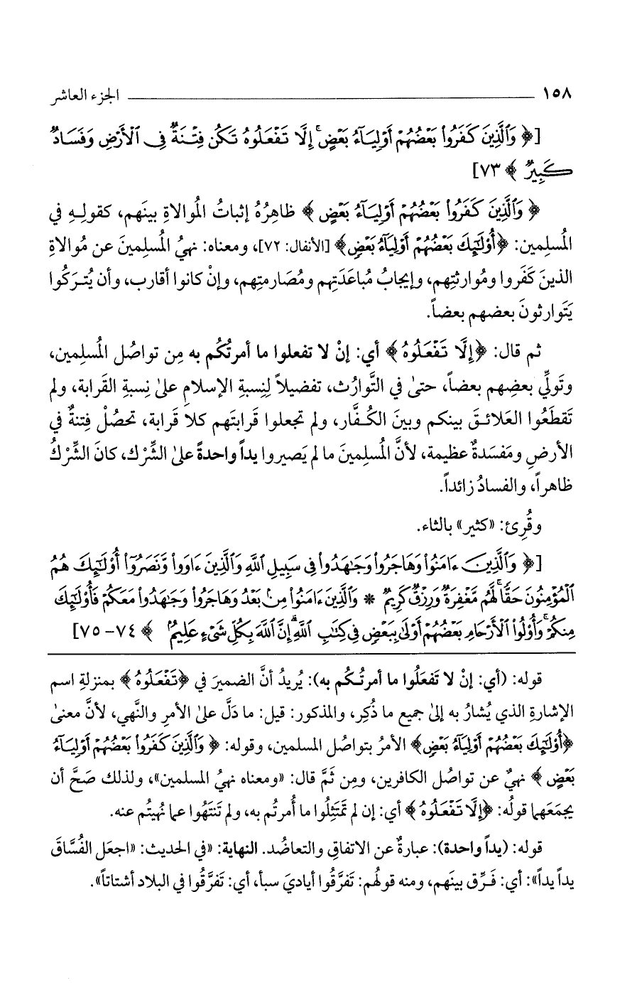 [(وَالَّذِينَ كَفَرُوا بَعْضُهُمْ أَوْلِياءُ بَعْضٍ إِلاَّ تَفْعَلُوهُ تَكُنْ فِتْنَةٌ فِي الْأَرْضِ وَفَسادٌ كَبِيرٌ) 73]