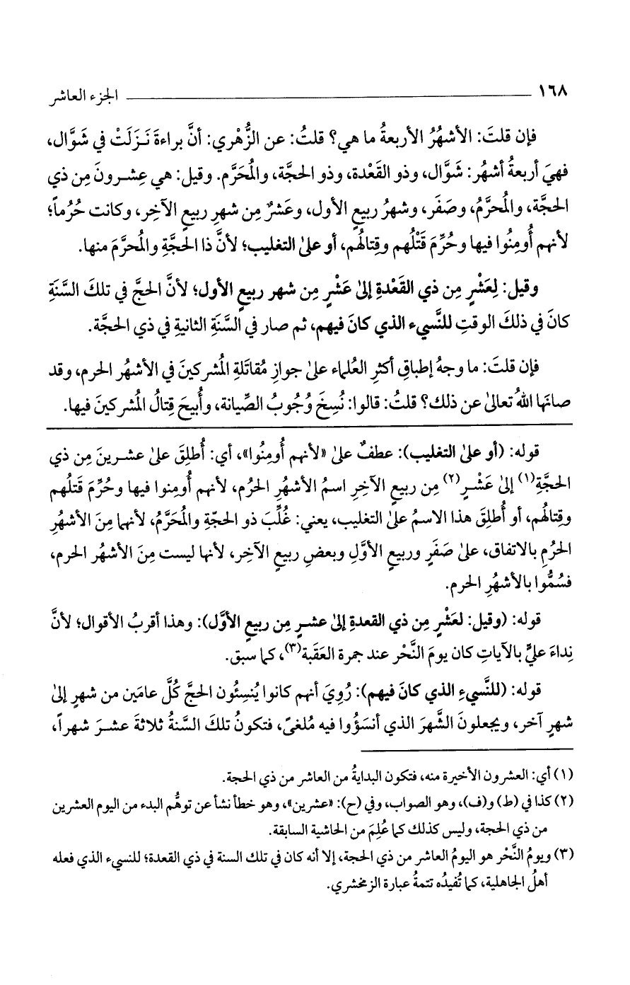 وقيل: لعشر من ذي القعدة إلى عشر من ربيع الأول؛ لأنّ الحج في تلك السنة كان في ذلك الوقت للنسيء الذي كان فيهم، ثم صار في السنة الثانية من ذي الحجة.