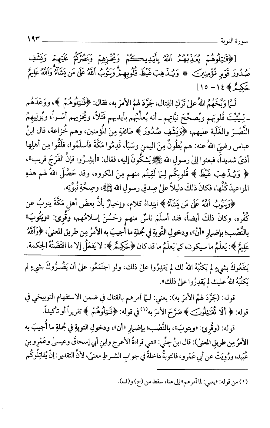 [(قاتِلُوهُمْ يُعَذِّبْهُمُ اللَّهُ بِأَيْدِيكُمْ وَيُخْزِهِمْ وَيَنْصُرْكُمْ عَلَيْهِمْ وَيَشْفِ صُدُورَ قَوْمٍ مُؤْمِنِينَ * وَيُذْهِبْ غَيْظَ قُلُوبِهِمْ وَيَتُوبُ اللَّهُ عَلى مَنْ يَشاءُ وَاللَّهُ عَلِيمٌ حَكِيمٌ) 14 - 15]