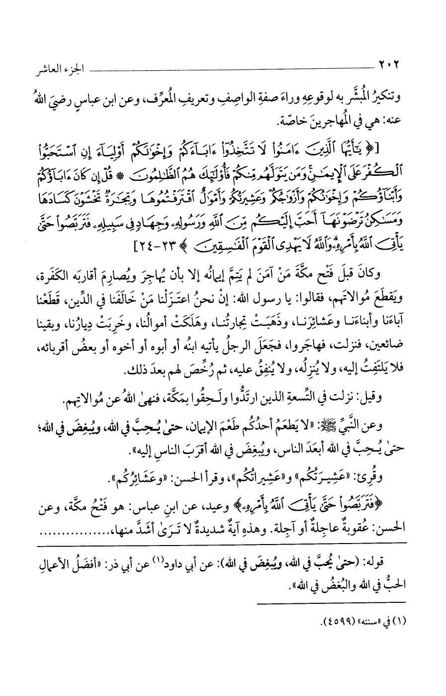 [(يا أَيُّهَا الَّذِينَ آمَنُوا لا تَتَّخِذُوا آباءَكُمْ وَإِخْوانَكُمْ أَوْلِياءَ إِنِ اسْتَحَبُّوا الْكُفْرَ عَلَى الْإِيمانِ وَمَنْ يَتَوَلَّهُمْ مِنْكُمْ فَأُولئِكَ هُمُ الظَّالِمُونَ * قُلْ إِنْ كانَ آباؤُكُمْ وَأَبْناؤُكُمْ وَإِخْوانُكُمْ وَأَزْواجُكُمْ وَعَشِيرَتُكُمْ وَأَمْوالٌ اقْتَرَفْتُمُوها وَتِجارَةٌ تَخْشَوْنَ كَسادَها وَمَساكِنُ تَرْضَوْنَها أَحَبَّ إِلَيْكُمْ مِنَ اللَّهِ وَرَسُولِهِ وَجِهادٍ فِي سَبِيلِهِ فَتَرَبَّصُوا حَتَّى يَاتِيَ اللَّهُ بِأَمْرِهِ وَاللَّهُ لا يَهْدِي الْقَوْمَ الْفاسِقِينَ) 23 - 24]