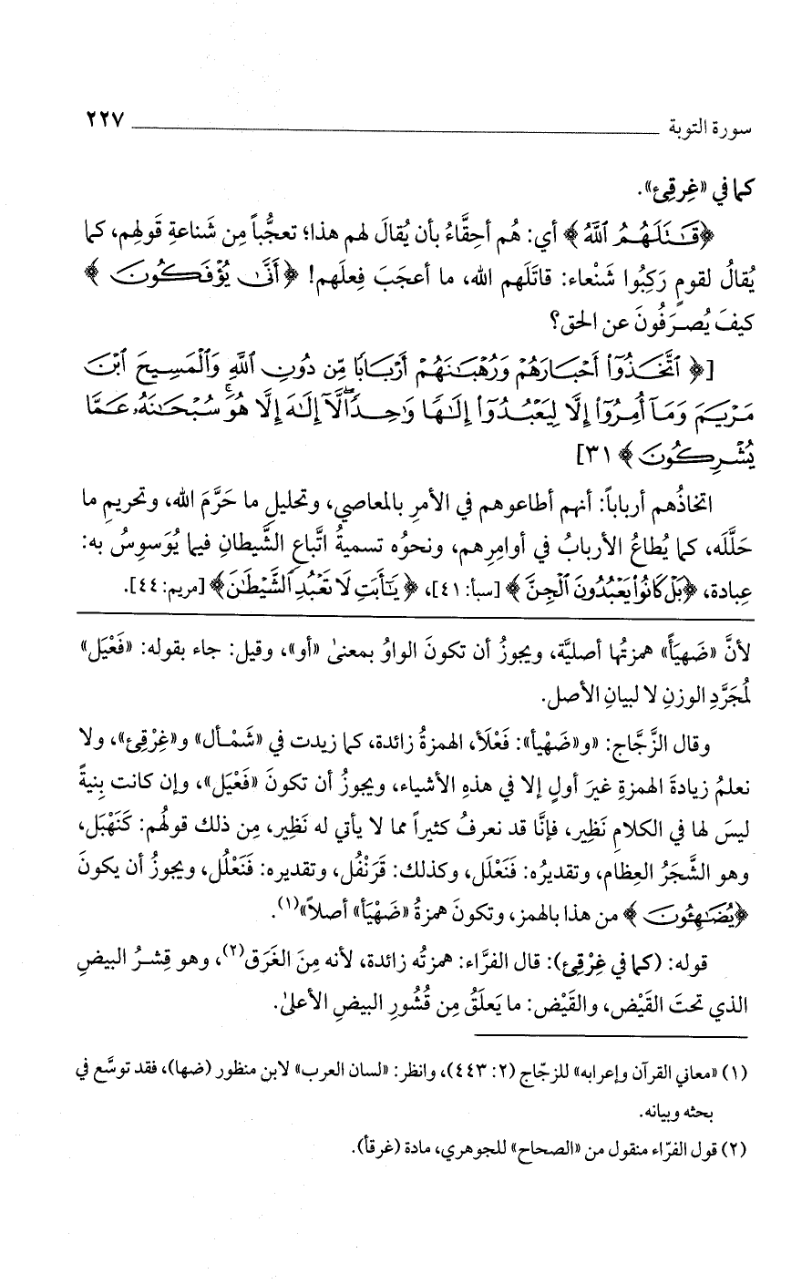 [(اتَّخَذُوا أَحْبارَهُمْ وَرُهْبانَهُمْ أَرْباباً مِنْ دُونِ اللَّهِ وَالْمَسِيحَ ابْنَ مَرْيَمَ وَما أُمِرُوا إِلاَّ لِيَعْبُدُوا إِلهاً واحِداً لا إِلهَ إِلاَّ هُوَ سُبْحانَهُ عَمَّا يُشْرِكُونَ) 31]