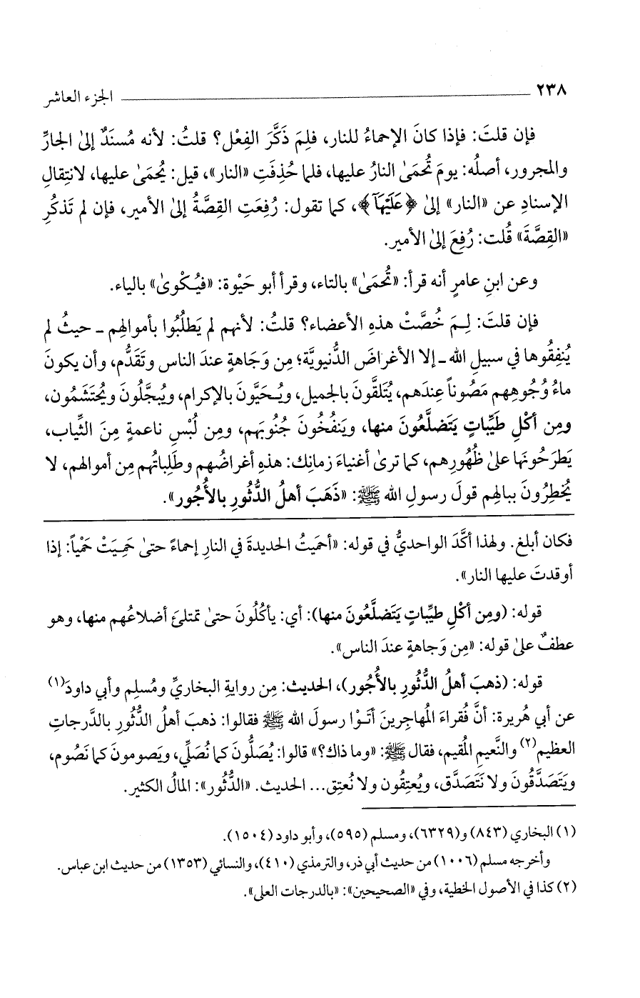 قوله: (ذهب أهل الدثور بالأجور)، الحديث: من رواية البخاري ومسلم وأبي داود عن أبي هريرة: أن فقراء المهاجرين أتوا رسول الله صلى الله عليه وسلم فقالوا: ذهب أهل الدثور بالدرجات العظيم والنعيم المقيم، فقال صلى الله عليه وسلم: "وما ذاك؟ " قالوا: يصلون كما نصلي، ويصومون كما نصوم، ويتصدقون ولا نتصدق، ويعتقون ولا نُعتق ... الحديث."الدثور": المال الكثير.