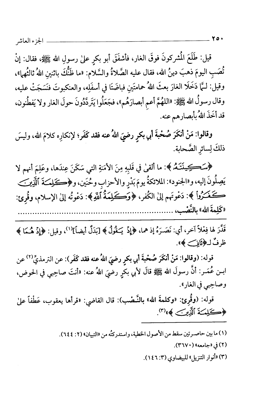 قوله: (وقرئ: "وكلمة الله" بالنصب": قال القاضي: "قرأها يعقوب، عطفاً على (كَلِمَةَ الَّذِينَ) ".