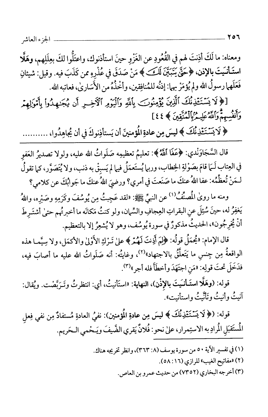 [(لا يَسْتَئذِنُكَ الَّذِينَ يُؤْمِنُونَ بِاللَّهِ وَالْيَوْمِ الْآخِرِ أَنْ يُجاهِدُوا بِأَمْوالِهِمْ وَأَنْفُسِهِمْ وَاللَّهُ عَلِيمٌ بِالْمُتَّقِينَ) 44]