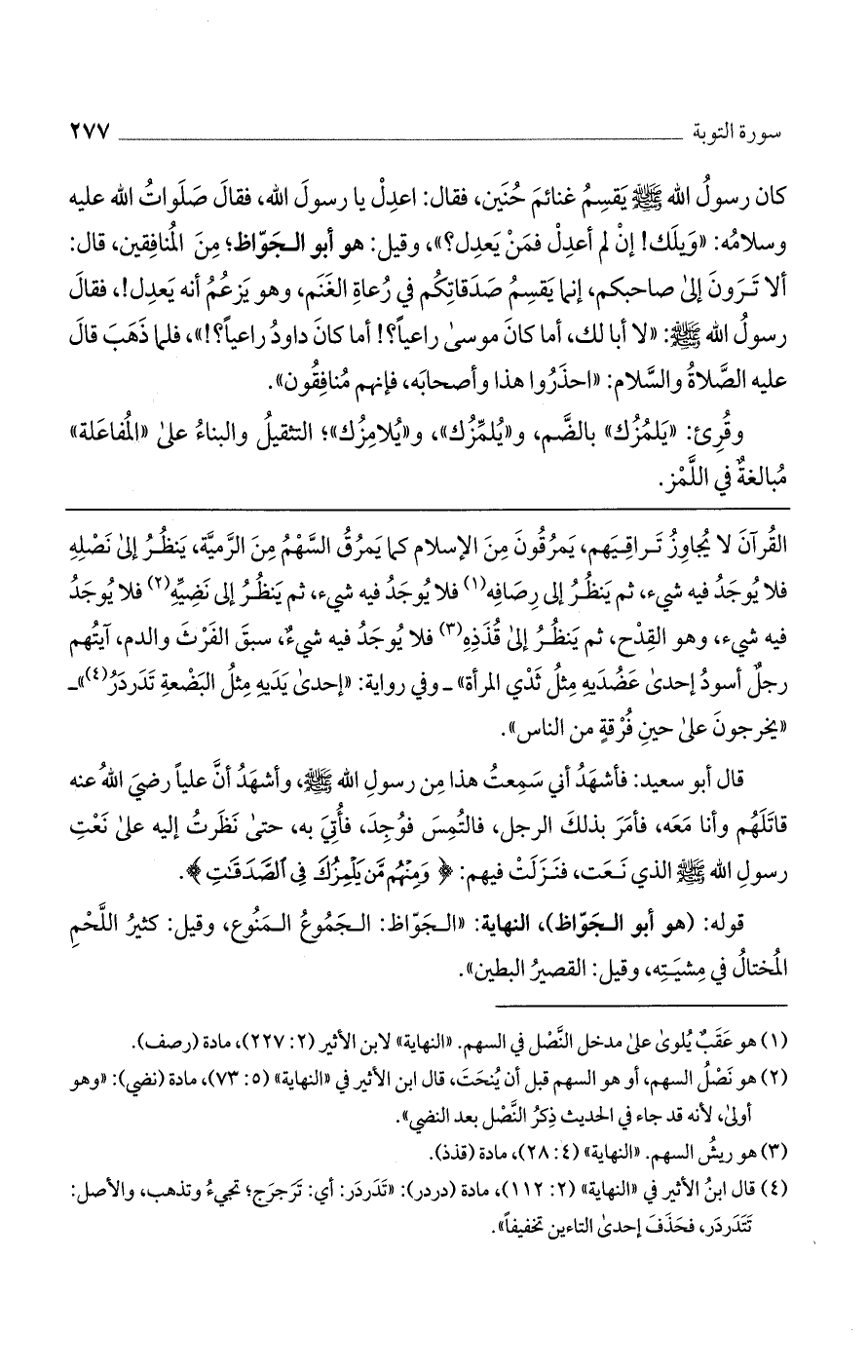 كان رسول الله صلى الله عليه وسلم يقسم غنائم حنين، فقال: اعدل يا رسول الله، فقال صلوات الله عليه وسلامه "ويلك إن لم أعدل فمن يعدل؟ "، وقيل: هو أبو الجواظ، من المنافقين، قال: ألا ترون إلى صاحبكم، إنما يقسم صدقاتكم في رعاة الغنم، وهو يزعم أنه يعدل! ، فقال رسول الله صلى الله عليه وسلم: "لا أبالك، أما كان موسى راعياً؟ أما كان داود راعياً؟ ! "، فلما ذهب قال عليه الصلاة والسلام "احذروا هذا وأصحابه، فإنهم منافقون".