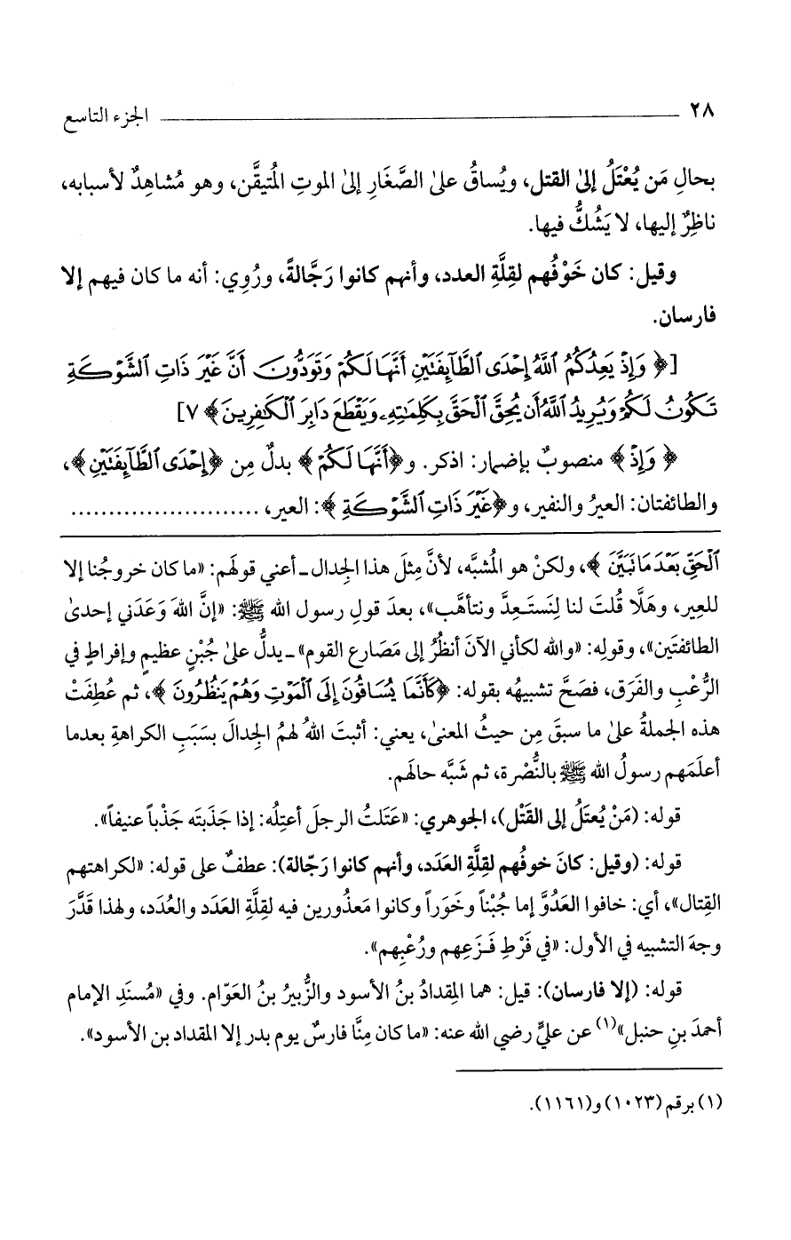 [(وَإِذْ يَعِدُكُمُ اللَّهُ إِحْدَى الطَّائِفَتَيْنِ أَنَّها لَكُمْ وَتَوَدُّونَ أَنَّ غَيْرَ ذاتِ الشَّوْكَةِ تَكُونُ لَكُمْ وَيُرِيدُ اللَّهُ أَنْ يُحِقَّ الْحَقَّ بِكَلِماتِهِ وَيَقْطَعَ دابِرَ الْكافِرِينَ) 7]