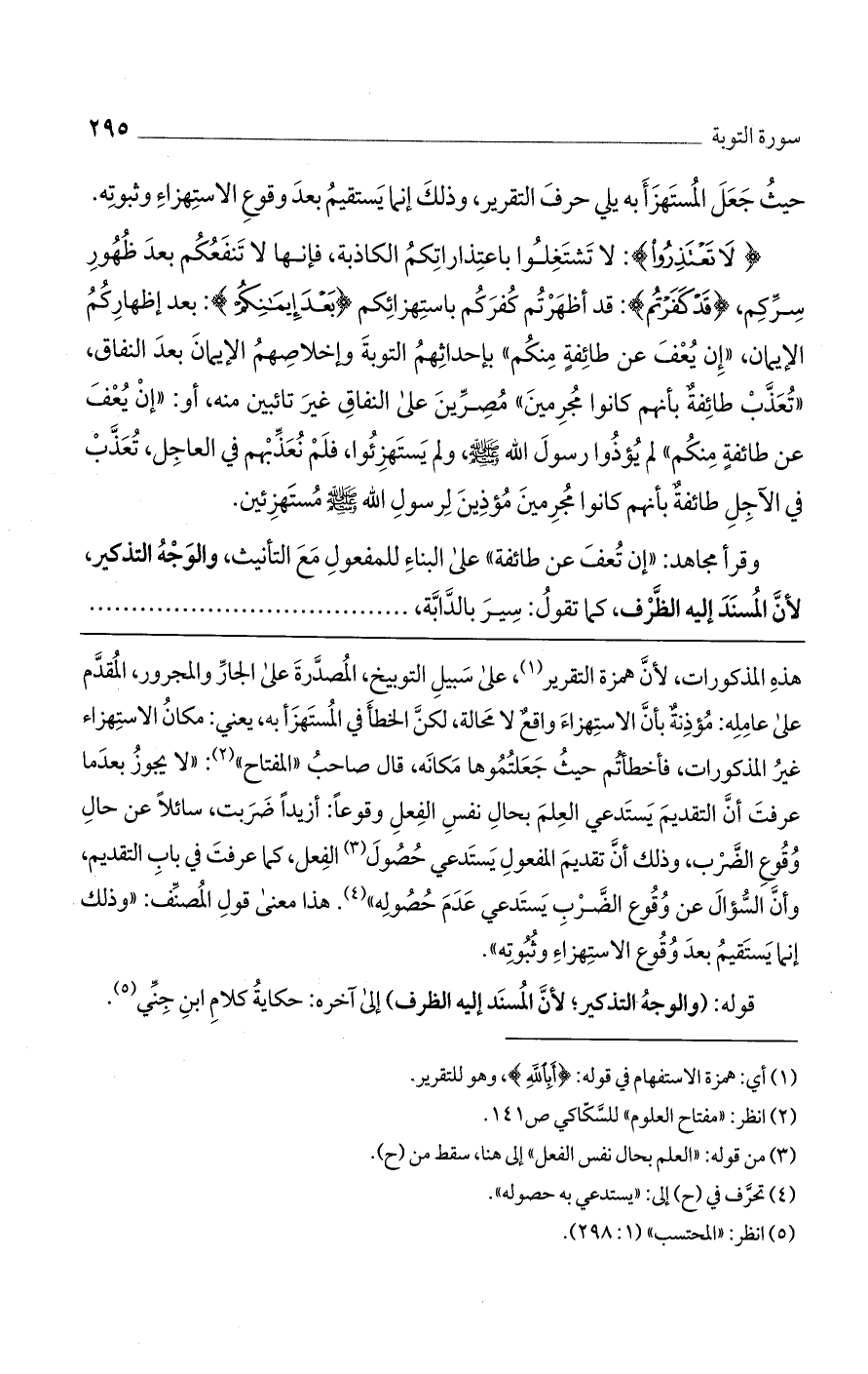 (لا تَعْتَذِرُوا): لا تشتغلوا باعتذاراتكم الكاذبة، فإنها لا تنفعكم بعد ظهور سركم، (قَدْ كَفَرْتُمْ): قد أظهرتم كفركم باستهزائكم (بَعْدَ إِيمانِكُمْ): بعد إظهاركم الإيمان، "إِنْ يعْفُ عَنْ طائِفَةٍ مِنْكُمْ" بإحداثهم التوبة وإخلاصهم الإيمان بعد النفاق، "نُعَذِّبْ طائِفَةً بِأَنَّهُمْ كانُوا مُجْرِمِينَ" مصرين على النفاق غير تائبين منه، أو: "إن يعف عن طائفة منكم" لم يؤذوا رسول الله صلى الله عليه وسلم، ولم يستهزءوا فلم نعذبهم في العاجل، تعذب في الآجل طائفة بأنهم كانوا مجرمين مؤذين لرسول الله صلى الله عليه وسلم مستهزئين.
