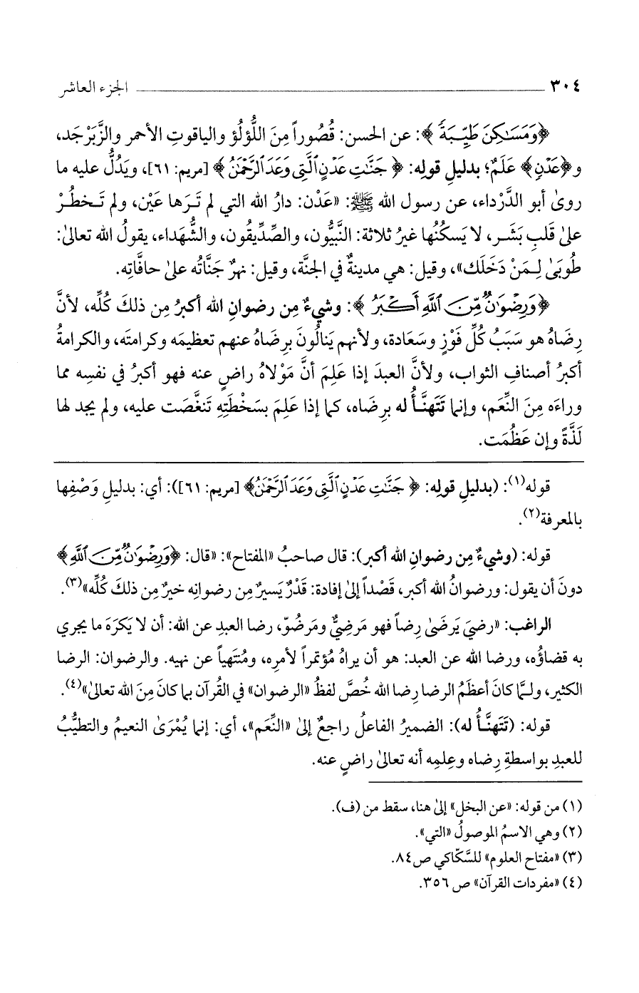 قوله: (بدليل قوله: (جَنَّاتِ عَدْنٍ الَّتِي وَعَدَ الرَّحْمَنُ) [مريم: 61]: أي: بدليل وصفها بالمعرفة.
