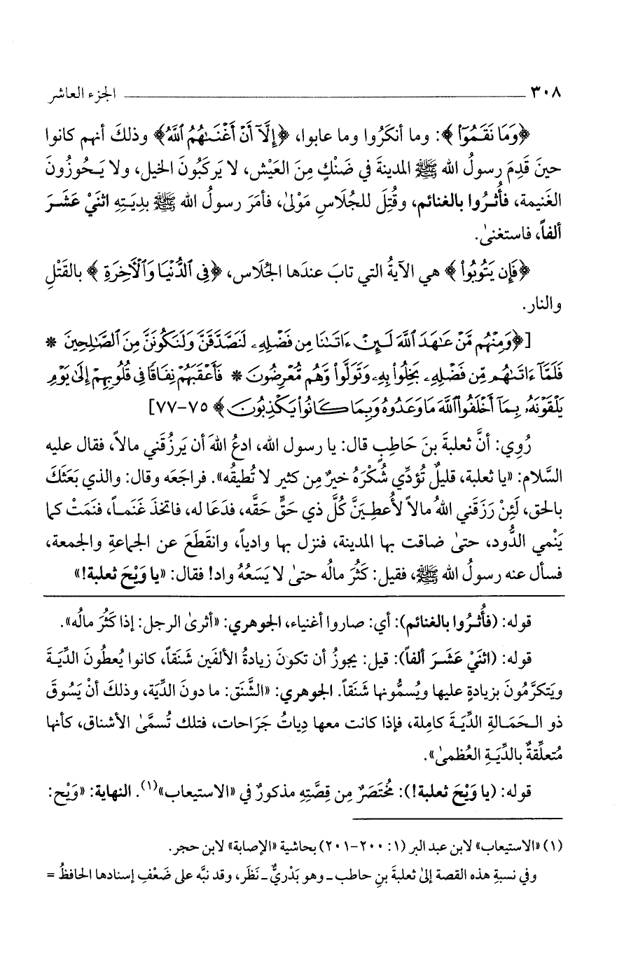 [(وَمِنْهُمْ مَنْ عاهَدَ اللَّهَ لَئِنْ آتانا مِنْ فَضْلِهِ لَنَصَّدَّقَنَّ وَلَنَكُونَنَّ مِنَ الصَّالِحِينَ * فَلَمَّا آتاهُمْ مِنْ فَضْلِهِ بَخِلُوا بِهِ وَتَوَلَّوْا وَهُمْ مُعْرِضُونَ * فَأَعْقَبَهُمْ نِفاقاً فِي قُلُوبِهِمْ إِلى يَوْمِ يَلْقَوْنَهُ بِما أَخْلَفُوا اللَّهَ ما وَعَدُوهُ وَبِما كانُوا يَكْذِبُونَ) 75 - 77].