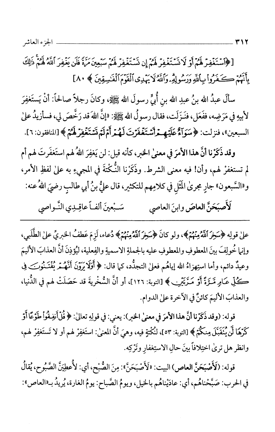 [(اسْتَغْفِرْ لَهُمْ أَوْ لا تَسْتَغْفِرْ لَهُمْ إِنْ تَسْتَغْفِرْ لَهُمْ سَبْعِينَ مَرَّةً فَلَنْ يَغْفِرَ اللَّهُ لَهُمْ ذلِكَ بِأَنَّهُمْ كَفَرُوا بِاللَّهِ وَرَسُولِهِ وَاللَّهُ لا يَهْدِي الْقَوْمَ الْفاسِقِينَ) 80]