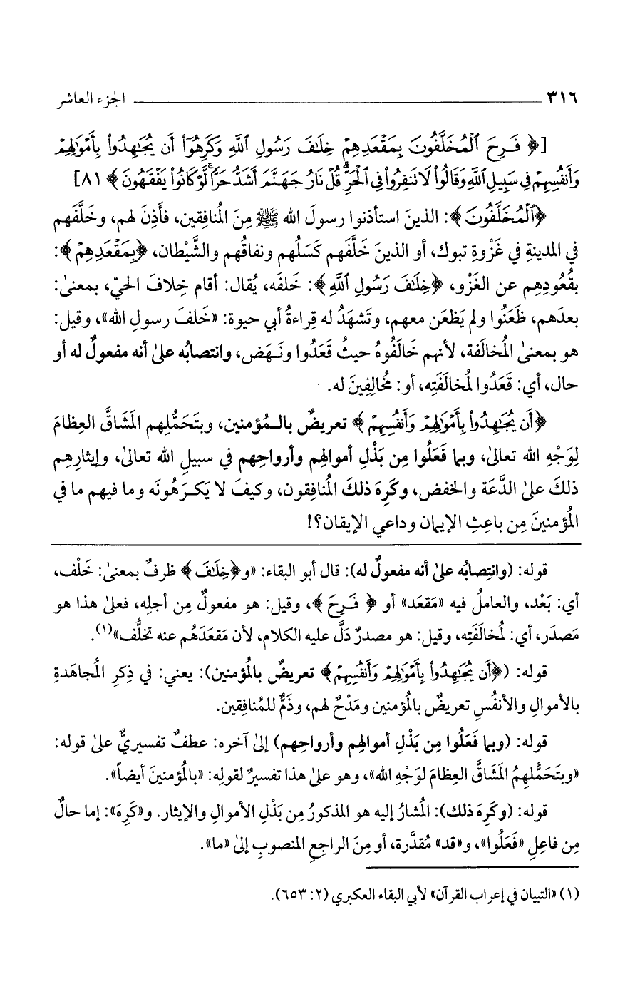 [(فَرِحَ الْمُخَلَّفُونَ بِمَقْعَدِهِمْ خِلافَ رَسُولِ اللَّهِ وَكَرِهُوا أَنْ يُجاهِدُوا بِأَمْوالِهِمْ وَأَنْفُسِهِمْ فِي سَبِيلِ اللَّهِ وَقالُوا لا تَنْفِرُوا فِي الْحَرِّ قُلْ نارُ جَهَنَّمَ أَشَدُّ حَرًّا لَوْ كانُوا يَفْقَهُونَ) 81].