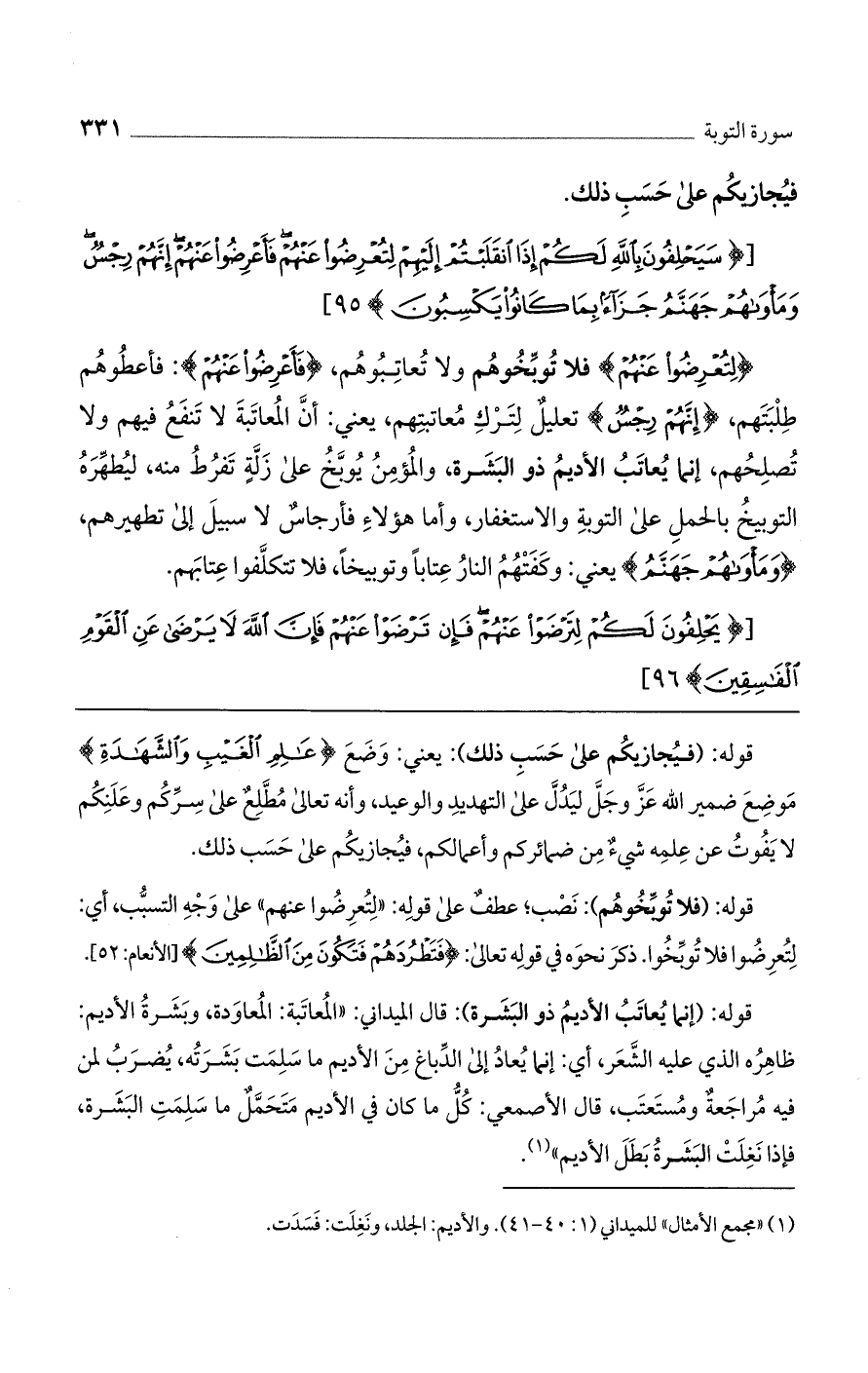 [(سَيَحْلِفُونَ بِاللَّهِ لَكُمْ إِذَا انْقَلَبْتُمْ إِلَيْهِمْ لِتُعْرِضُوا عَنْهُمْ فَأَعْرِضُوا عَنْهُمْ إِنَّهُمْ رِجْسٌ وَمَاواهُمْ جَهَنَّمُ جَزاءً بِما كانُوا يَكْسِبُونَ) 95].