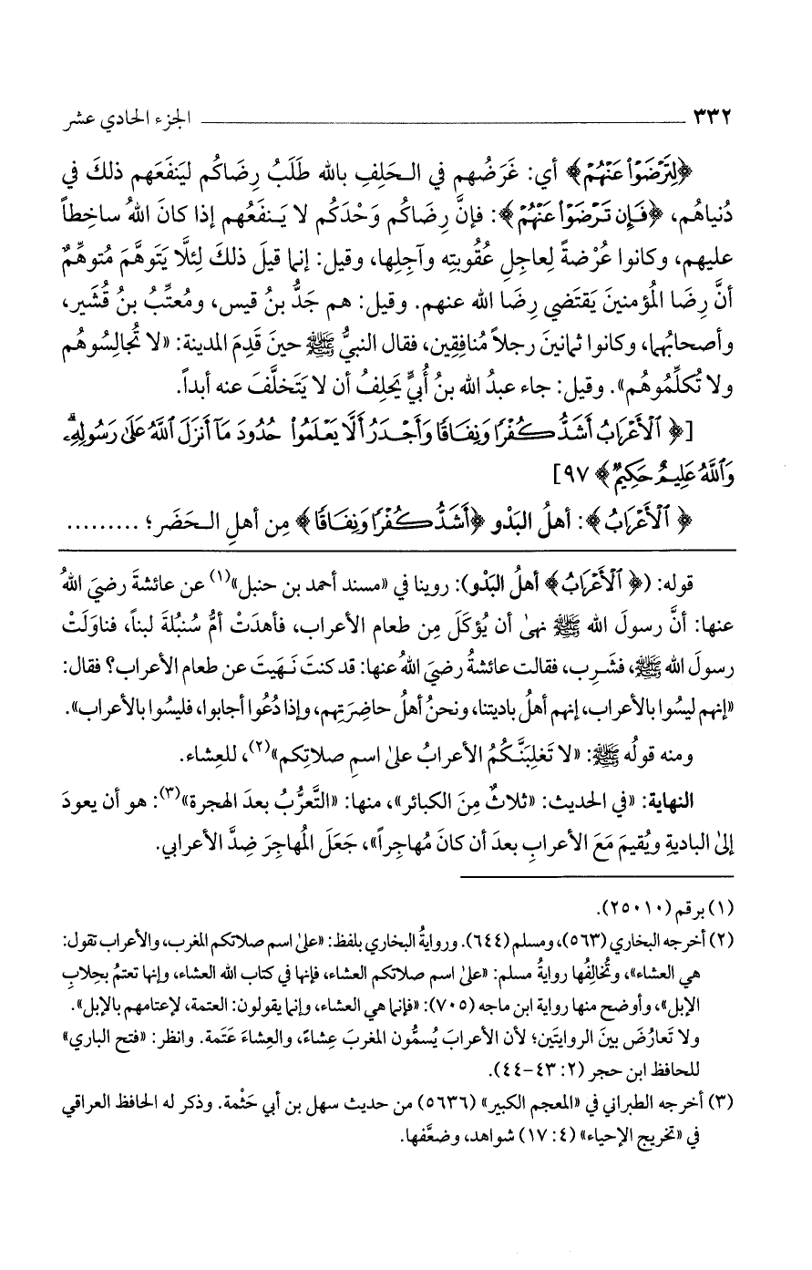 [(الْأَعْرابُ أَشَدُّ كُفْراً وَنِفاقاً وَأَجْدَرُ أَلاَّ يَعْلَمُوا حُدُودَ ما أَنْزَلَ اللَّهُ عَلى رَسُولِهِ وَاللَّهُ عَلِيمٌ حَكِيمٌ) 97].