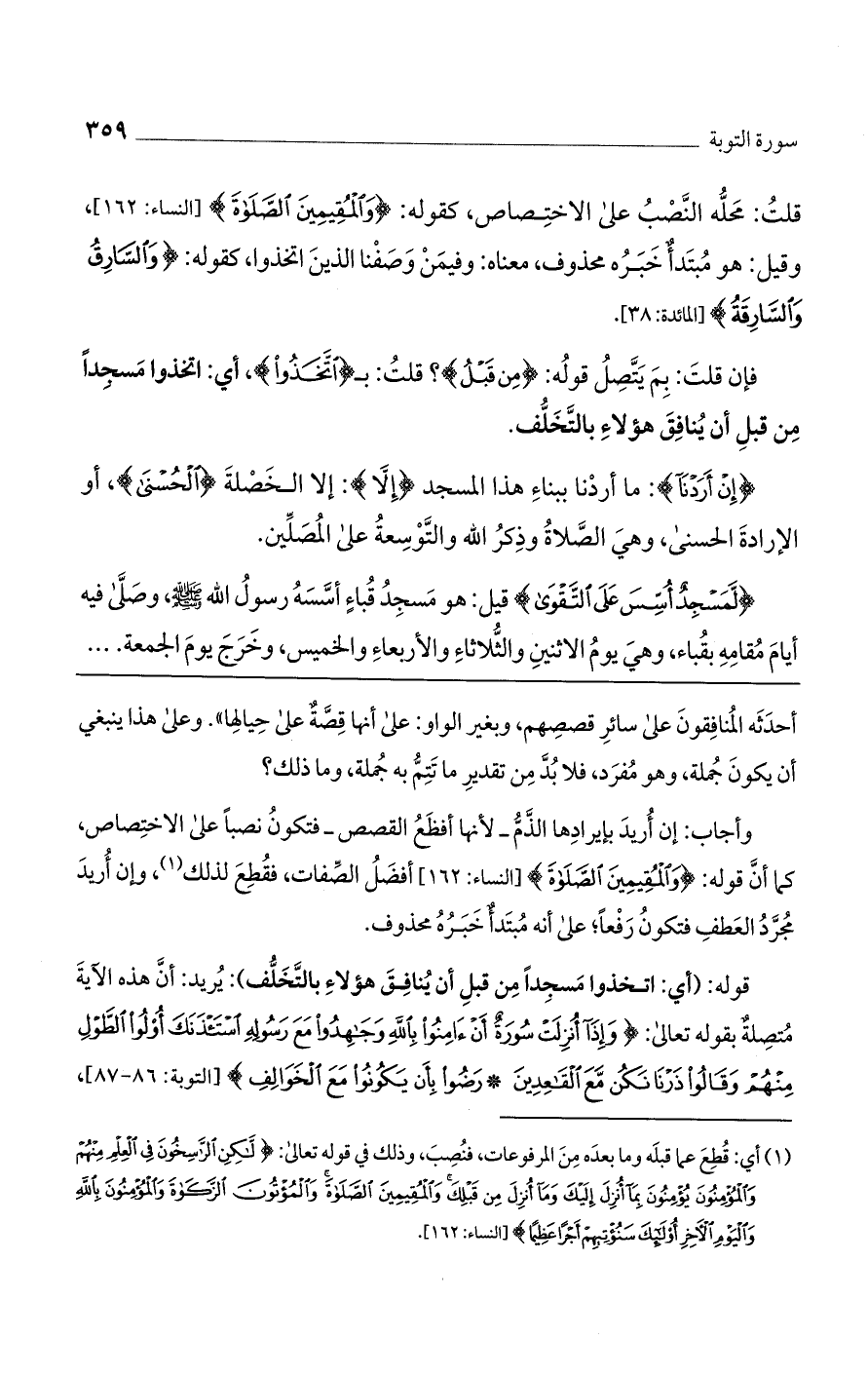 وأجاب: إن أريد بإيرادها الذم - لأنها أفظع القصص -فتكون نصباً على الاختصاص، كما أن قوله: (وَالْمُقِيمِينَ الصَّلاةَ) [النساء: 162] أفضل الصفات، فقطع لذلك، وإن أُريد مجرد العطف فتكون رفعاً؛ على أنه مبتدأ خبره محذوف.