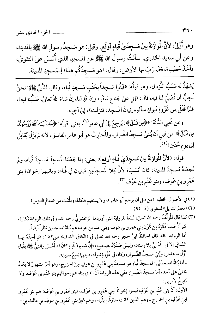 قوله: (لأن الموازنة بين مسجدي قباء أوقع): يعني: إذا جعلنا المسجد مسجد قُباء، ولم نجعله مسجد المدينة، كان أنسب؛ لأن كلا المسجدين مبنيان في قُباء، وبانيهما إخوان؛ بنو عمرو بن عوف، وبنو غنم بن عوف.