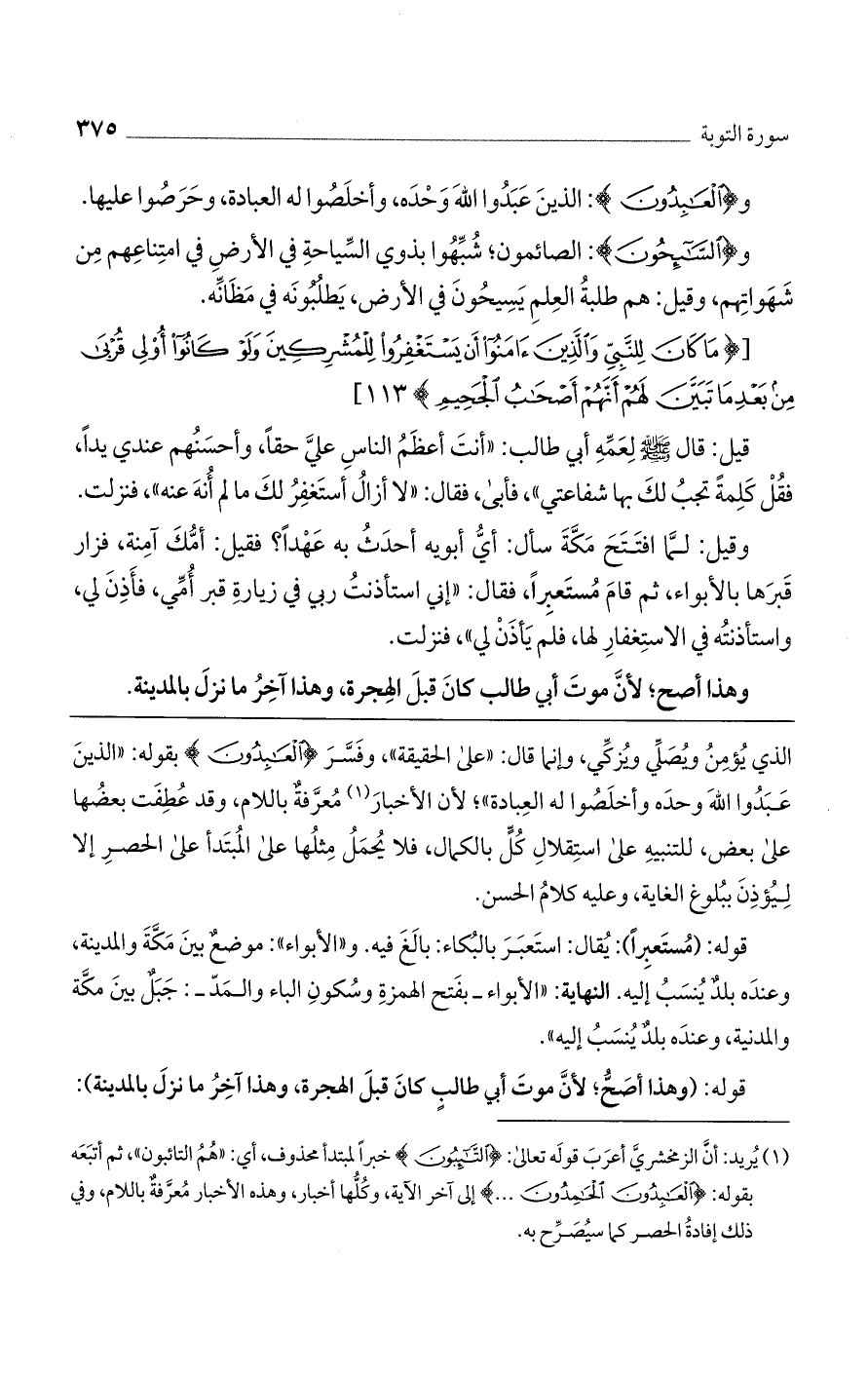 [(ما كانَ لِلنَّبِيِّ وَالَّذِينَ آمَنُوا أَنْ يَسْتَغْفِرُوا لِلْمُشْرِكِينَ وَلَوْ كانُوا أُولِي قُرْبى مِنْ بَعْدِ ما تَبَيَّنَ لَهُمْ أَنَّهُمْ أَصْحابُ الْجَحِيمِ) 113].