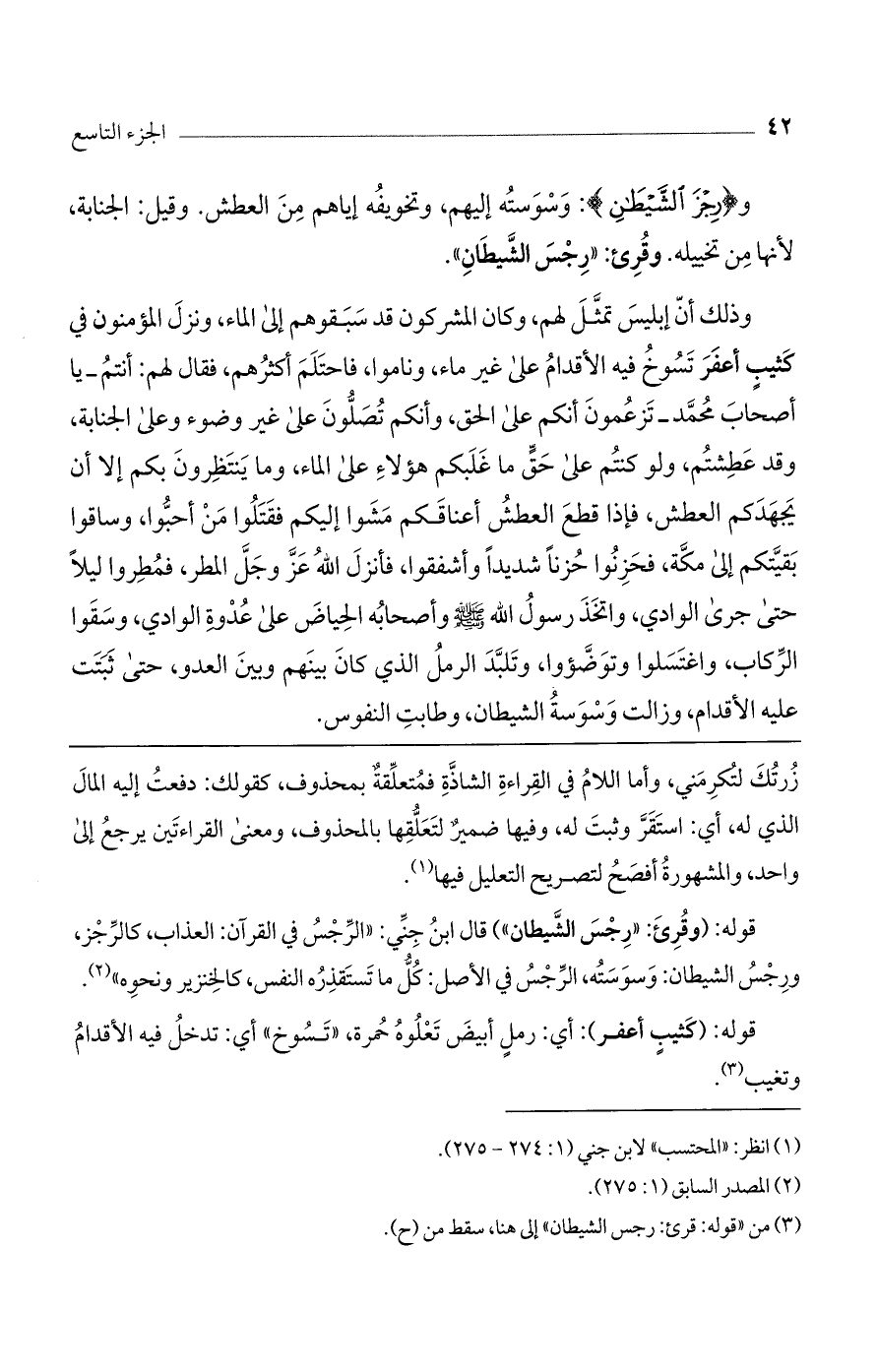 و (رِجْزَ الشَّيْطانِ): وسوسته إليهم، وتخويفه إياهم من العطش. وقيل: الجنابة، لأنها من تخييله. وقرئ: "رجس الشيطان".