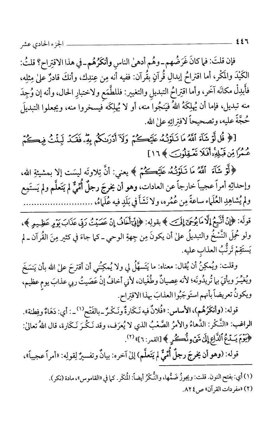 [(قُلْ لَوْ شاءَ اللَّهُ ما تَلَوْتُهُ عَلَيْكُمْ وَلا أَدْراكُمْ بِهِ فَقَدْ لَبِثْتُ فِيكُمْ عُمُراً مِنْ قَبْلِهِ أَفَلا تَعْقِلُون) 16].
