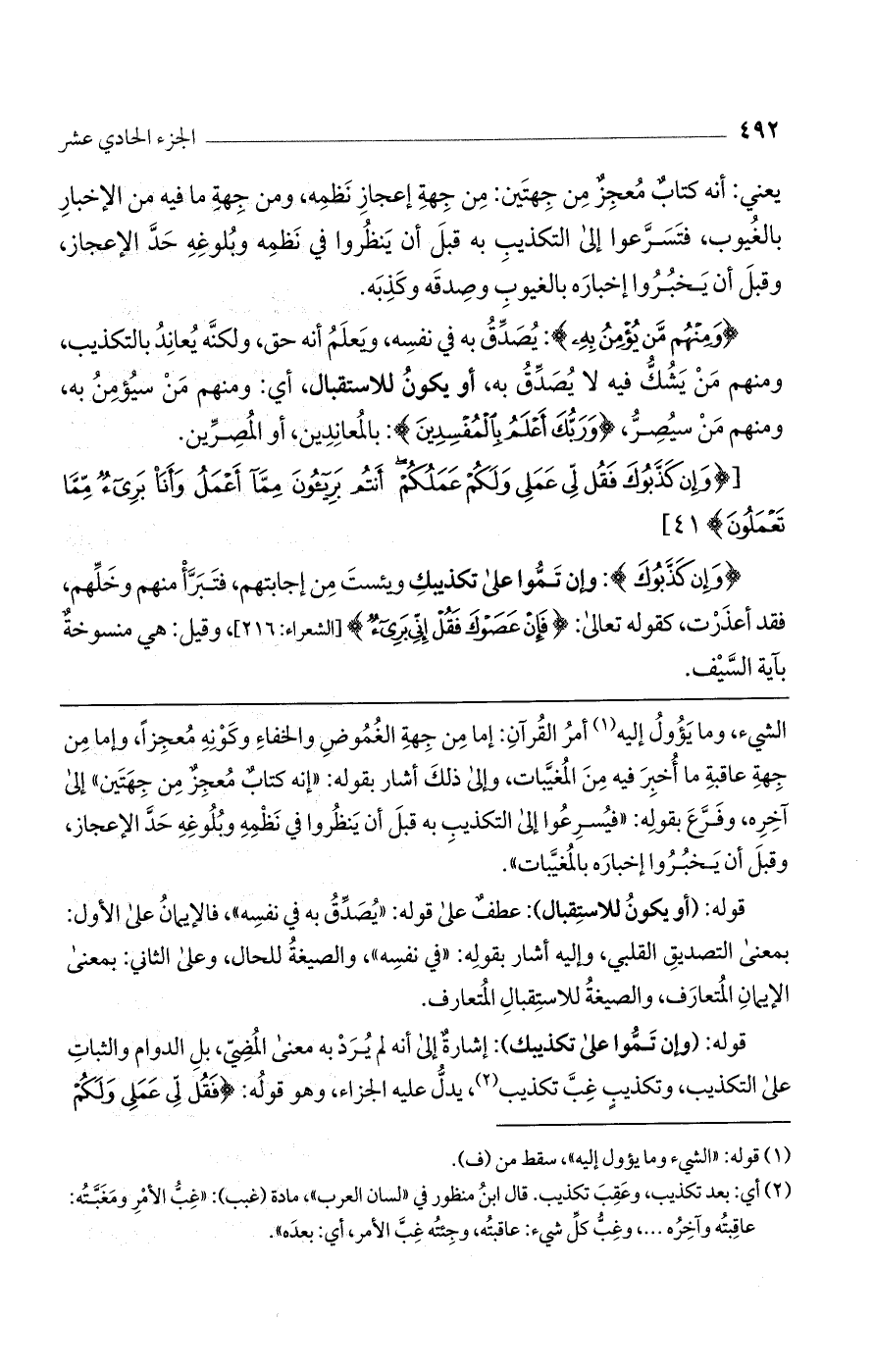 يعني: أنه كتاب معجز من جهتين: من جهة إعجاز نظمه، ومن جهة ما فيه من الإخبار بالغيوب، فتسرّعوا إلى التكذيب به قبل أن ينظروا في نظمه وبلوغه حدّ الإعجاز، وقبل أن يخبروا أخباره بالغيوب وصدقه وكذبه.