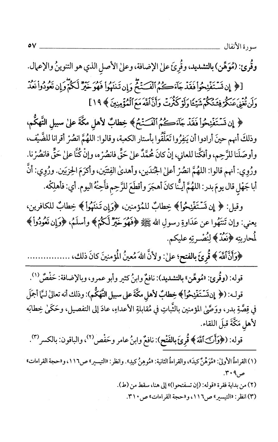 (وَأَنَّ اللَّهَ) قرئ بالفتح؛ على: ولأنّ الله معين المؤمنين كان ذلك، .......