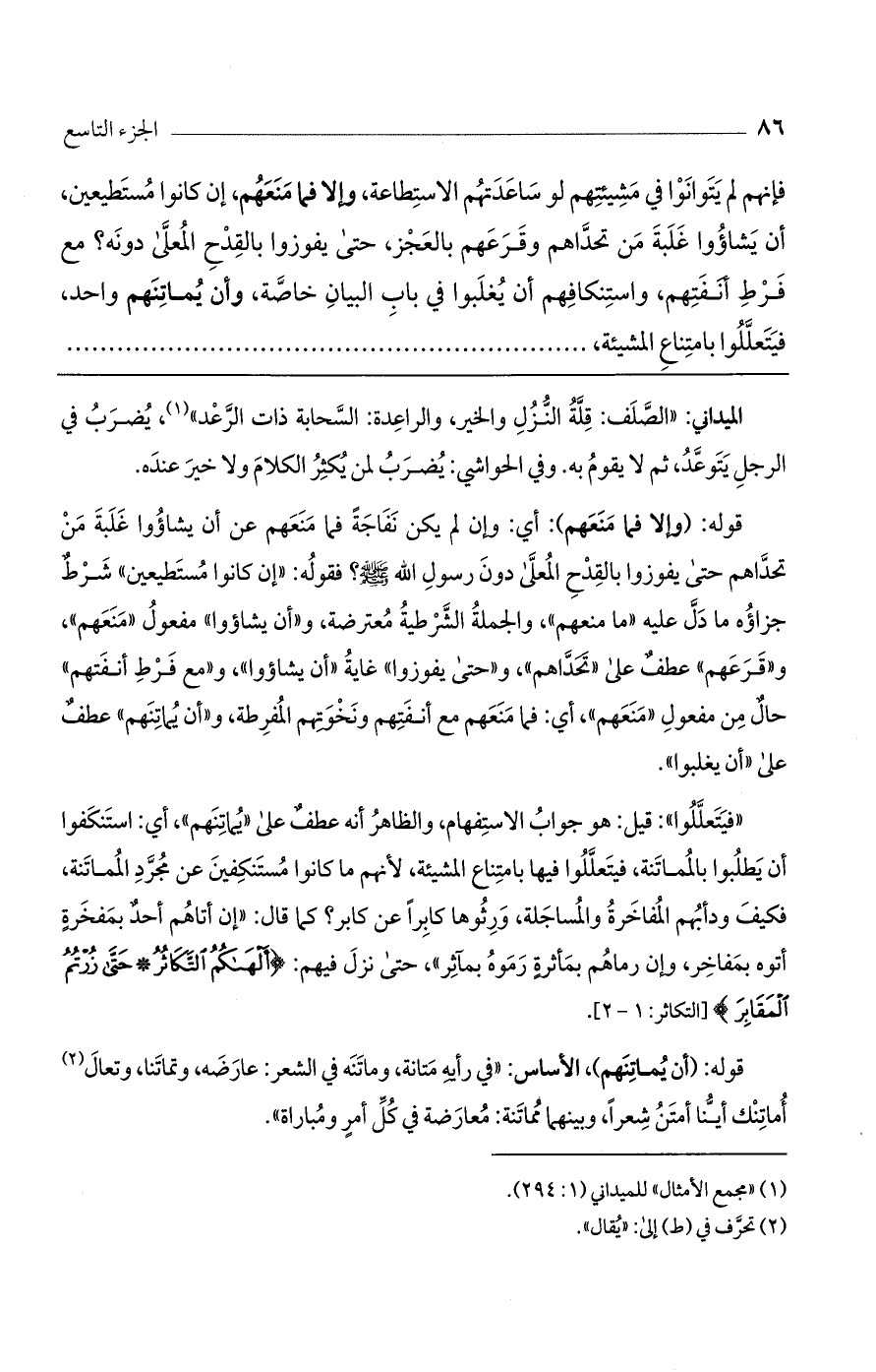 فإنهم لم يتوانوا في مشيئتهم لو ساعدتهم الاستطاعة، وإلا فما منعهم، إن كانوا مستطيعين، أن يشاؤوا غلبة من تحدّاهم وقرعهم بالعجز، حتى يفوزوا بالقدح المعلى دونه؟ مع فرط أنفتهم، واستنكافهم أن يغلبوا في باب البيان خاصة، وأن يماتنهم واحد، فيتعللوا بامتناع المشيئة، ........