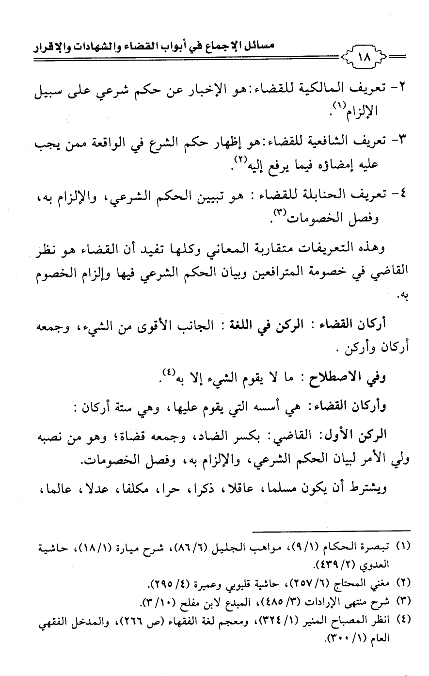 (¬1) تبصرة الحكام (1/ 9)، مواهب الجليل (6/ 86)، شرح ميارة (1/ 18)، حاشية العدوي (2/ 439).