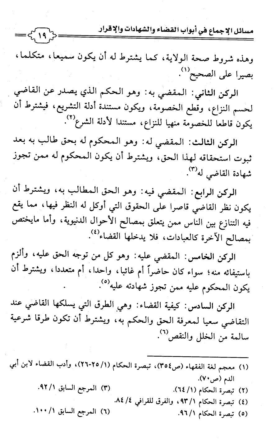 (¬1) معجم لغة الفقهاء (ص 354)، تبصرة الحكام (1/ 25 - 26)، وأدب القضاء لابن أبي الدم (ص 70).