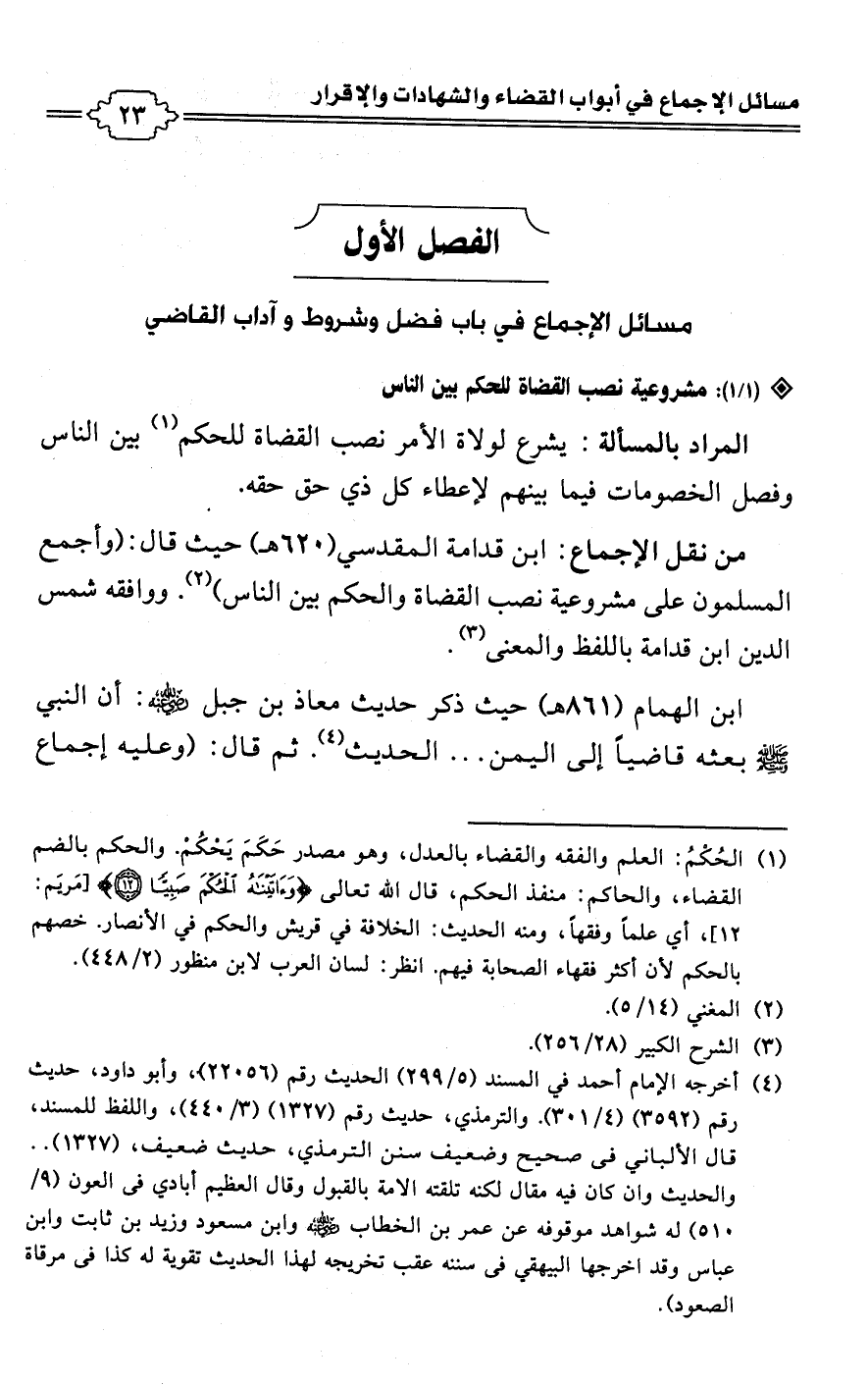 الفصل الأول مسائل الإجماع في باب فضل وشروط وآداب القاضي
