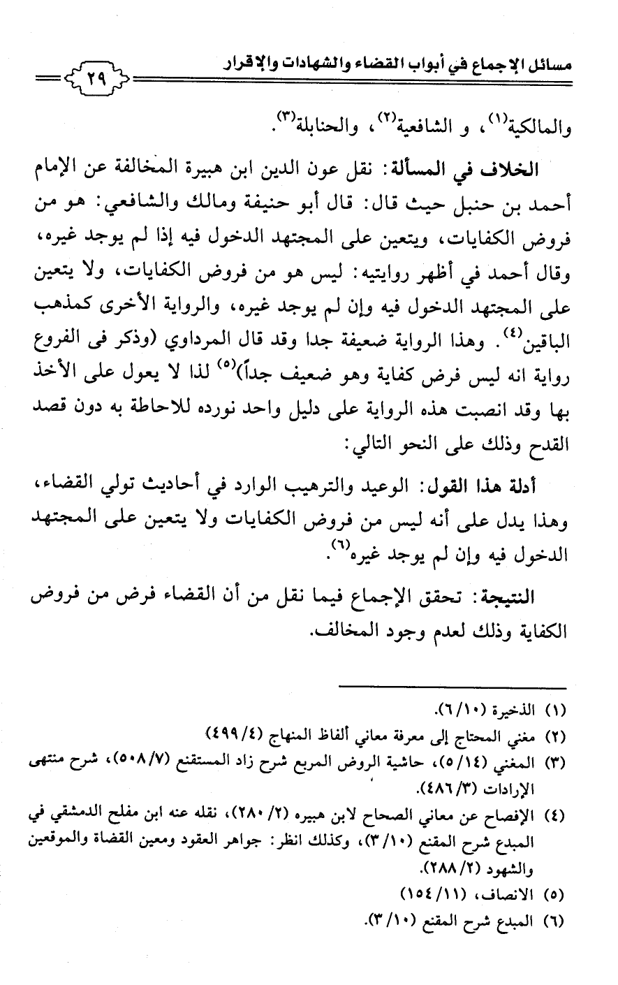 (¬4) الإفصاح عن معاني الصحاح لابن هبيره (2/ 280)، نقله عنه ابن مفلح الدمشقي في المبدع شرح المقنع (10/ 3)، وكذلك انظر: جواهر العقود ومعين القضاة والموقعين والشهود (2/ 288).