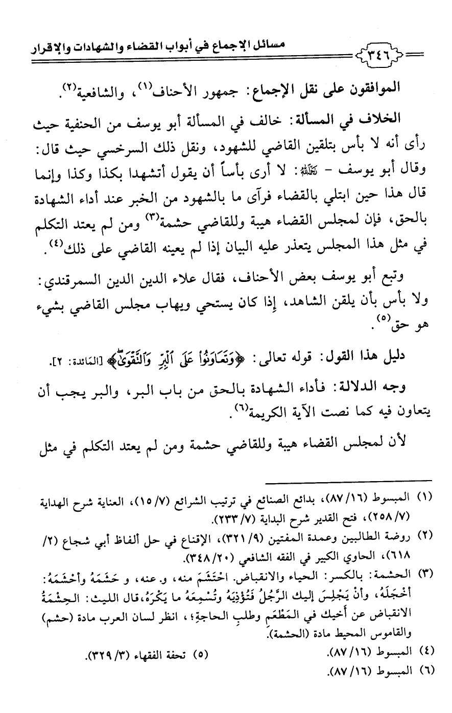 • وجه الدلالة: فأداء الشهادة بالحق من باب البر، والبر يجب أن يتعاون فيه كما نصت الآية الكريمة (¬6).