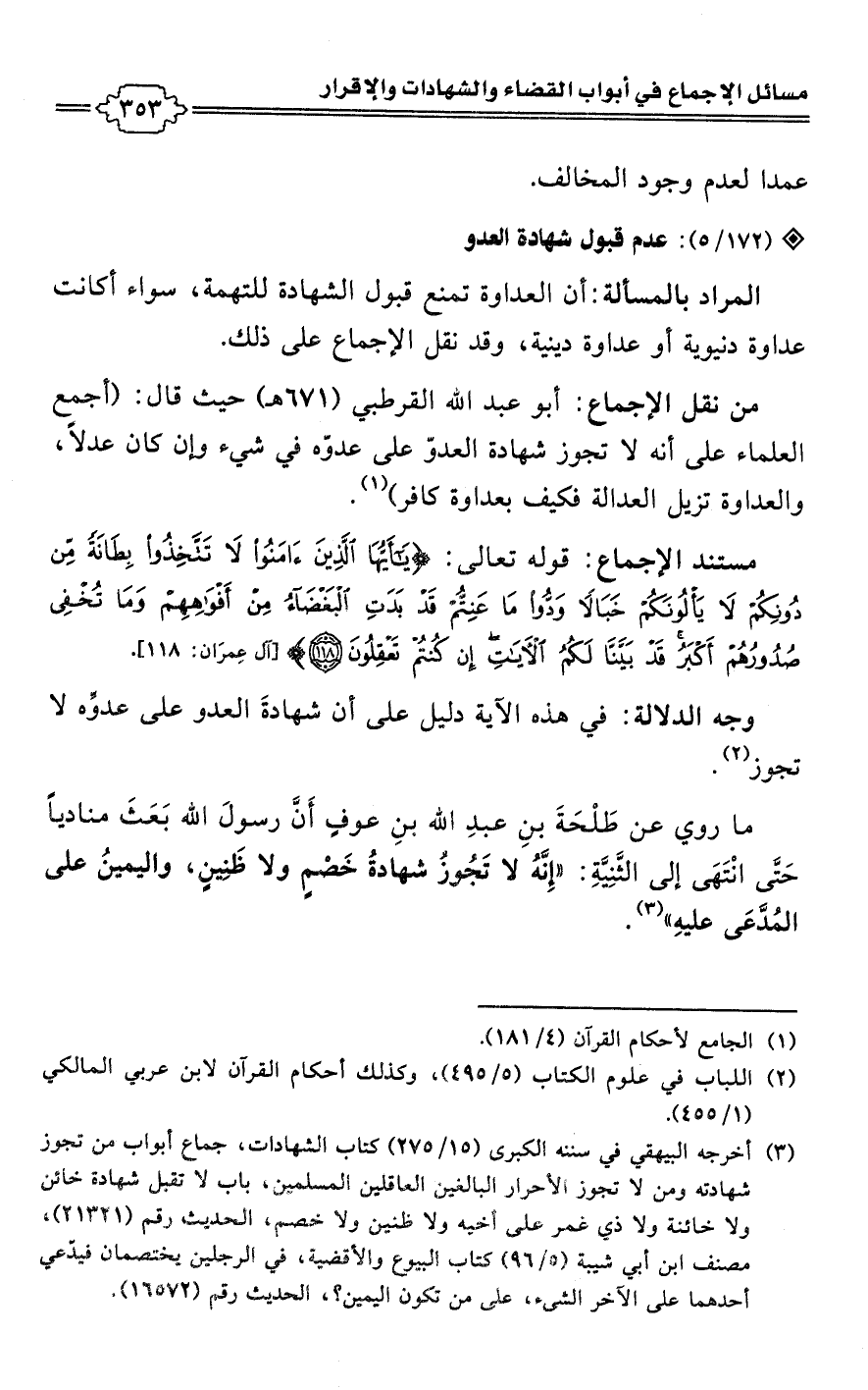 [172/ 5]: عدم قبول شهادة العدو