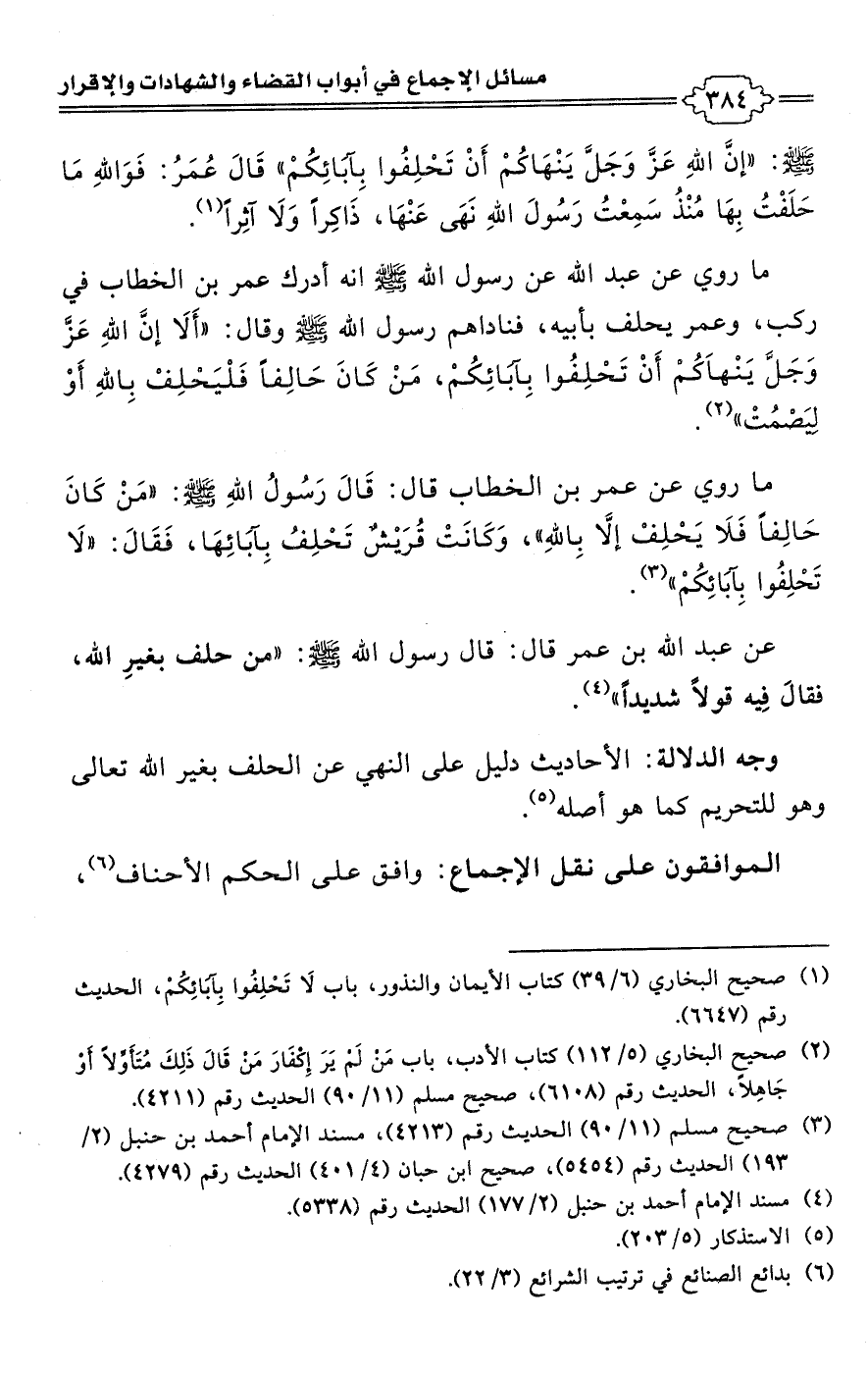 (¬1) صحيح البخاري (6/ 39) كتاب الأيمان والنذور، باب لَا تَحْلِفُوا بِآبَائِكُمْ، الحديث رقم (6647).