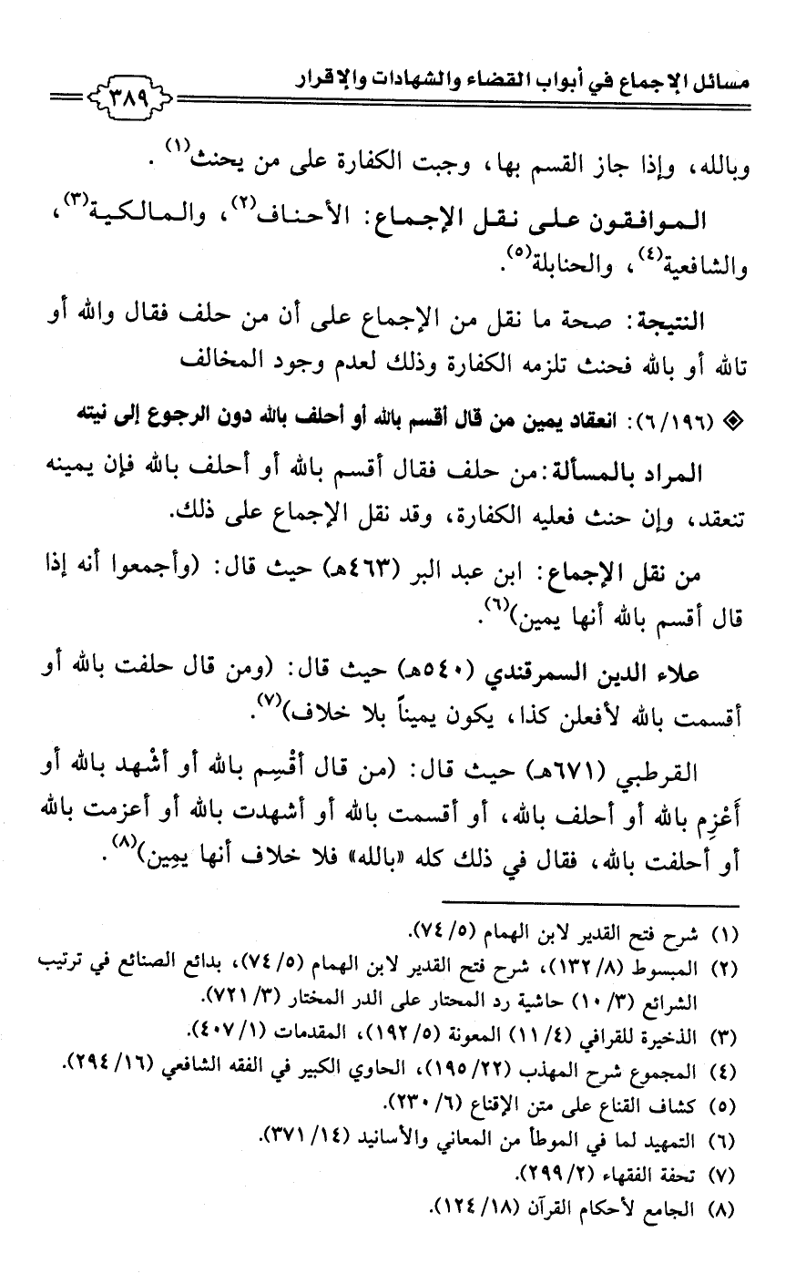 • من نقل الإجماع: ابن عبد البر (463 هـ) حيث قال: (وأجمعوا أنه إذا قال أقسم باللَّه أنها يمين) (¬6).