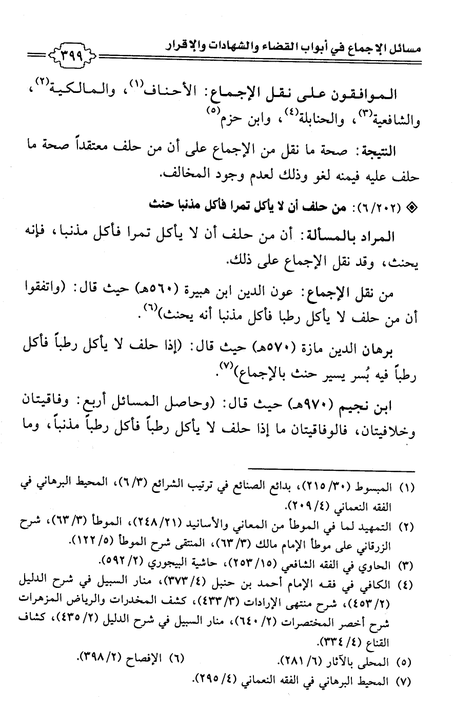 • من نقل الإجماع: عون الدين ابن هبيرة (560 هـ) حيث قال: (واتفقوا أن من حلف لا يأكل رطبا فأكل مذنبا أنه يحنث) (¬6).