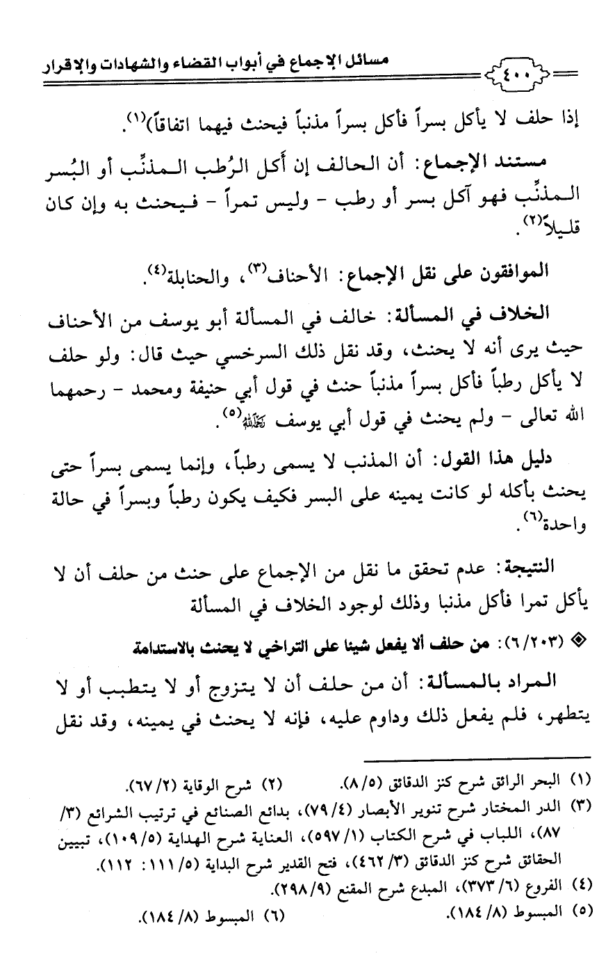 [203/ 6]: من حلف ألا يفعل شيئا على التراخي لا يحنث بالاستدامة