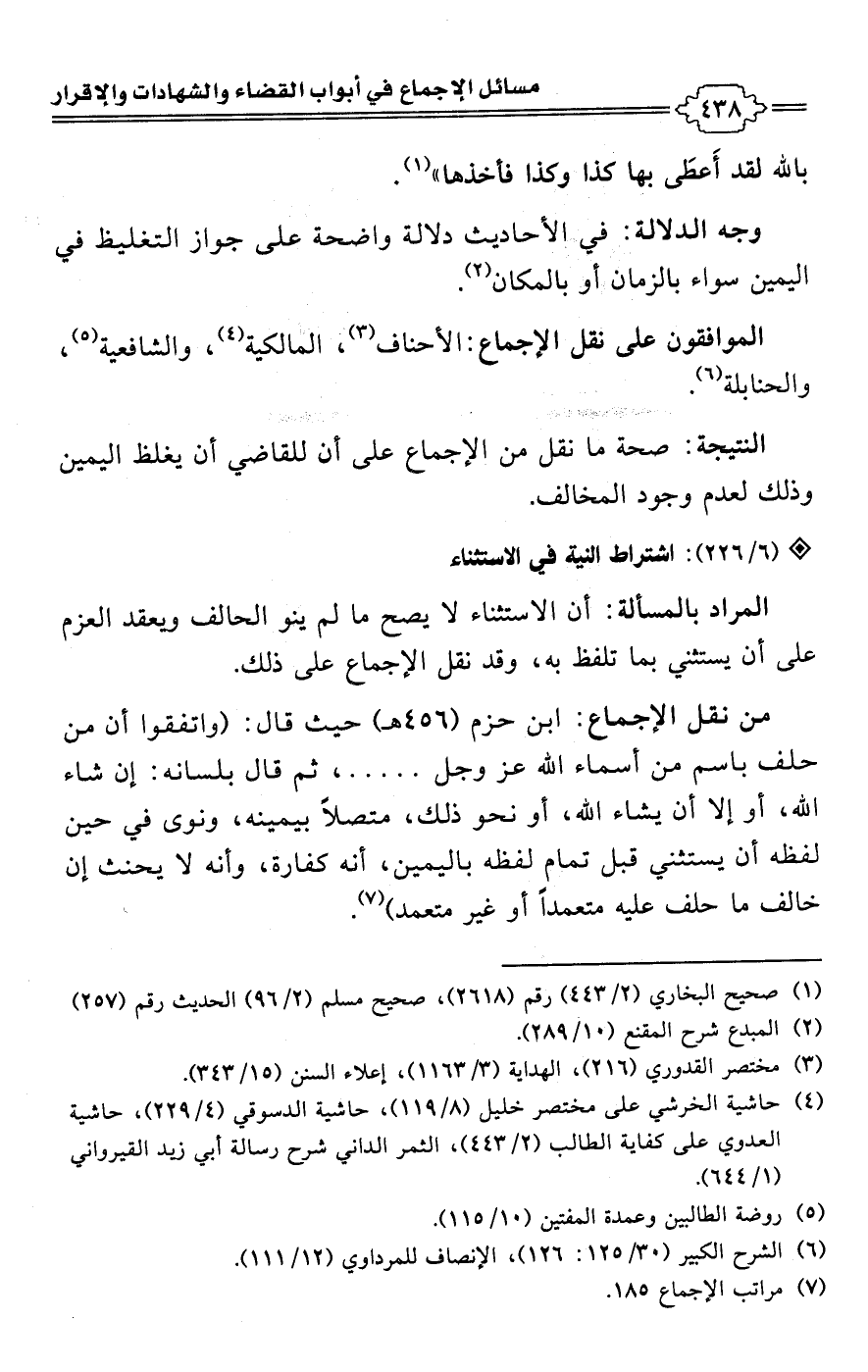 [226/ 6]: اشتراط النية في الاستثناء