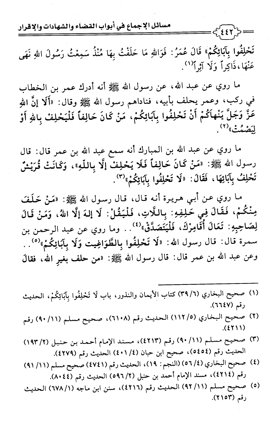 (¬1) صحيح البخاري (6/ 39) كتاب الأيمان والنذور، باب لَا تَحْلِفُوا بِآبائِكُمْ، الحديث رقم (6647).