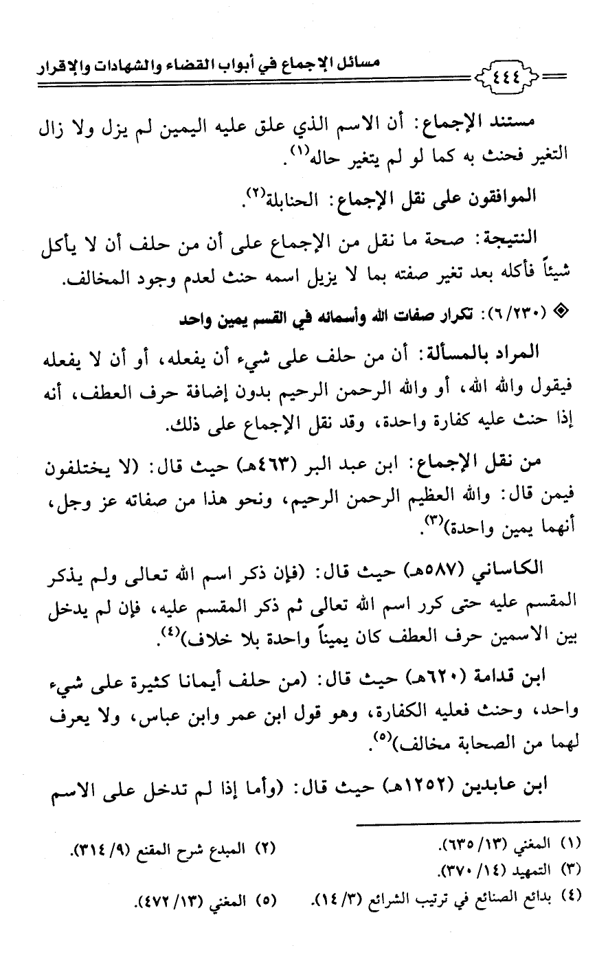 • من نقل الإجماع: ابن عبد البر (463 هـ) حيث قال: (لا يختلفون فيمن قال: واللَّه العظيم الرحمن الرحيم، ونحو هذا من صفاته عز وجل، أنهما يمين واحدة) (¬3).