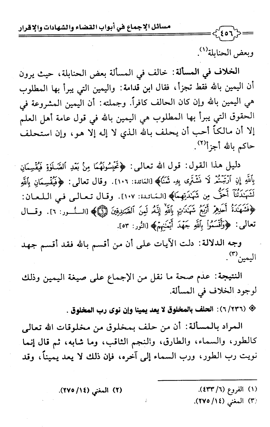 • وجه الدلالة: دلت الآيات على أن من أقسم باللَّه فقد أقسم جهد اليمين (¬3).Rعدم صحة ما نقل من الإجماع على صيغة اليمين وذلك لوجود الخلاف في المسألة.