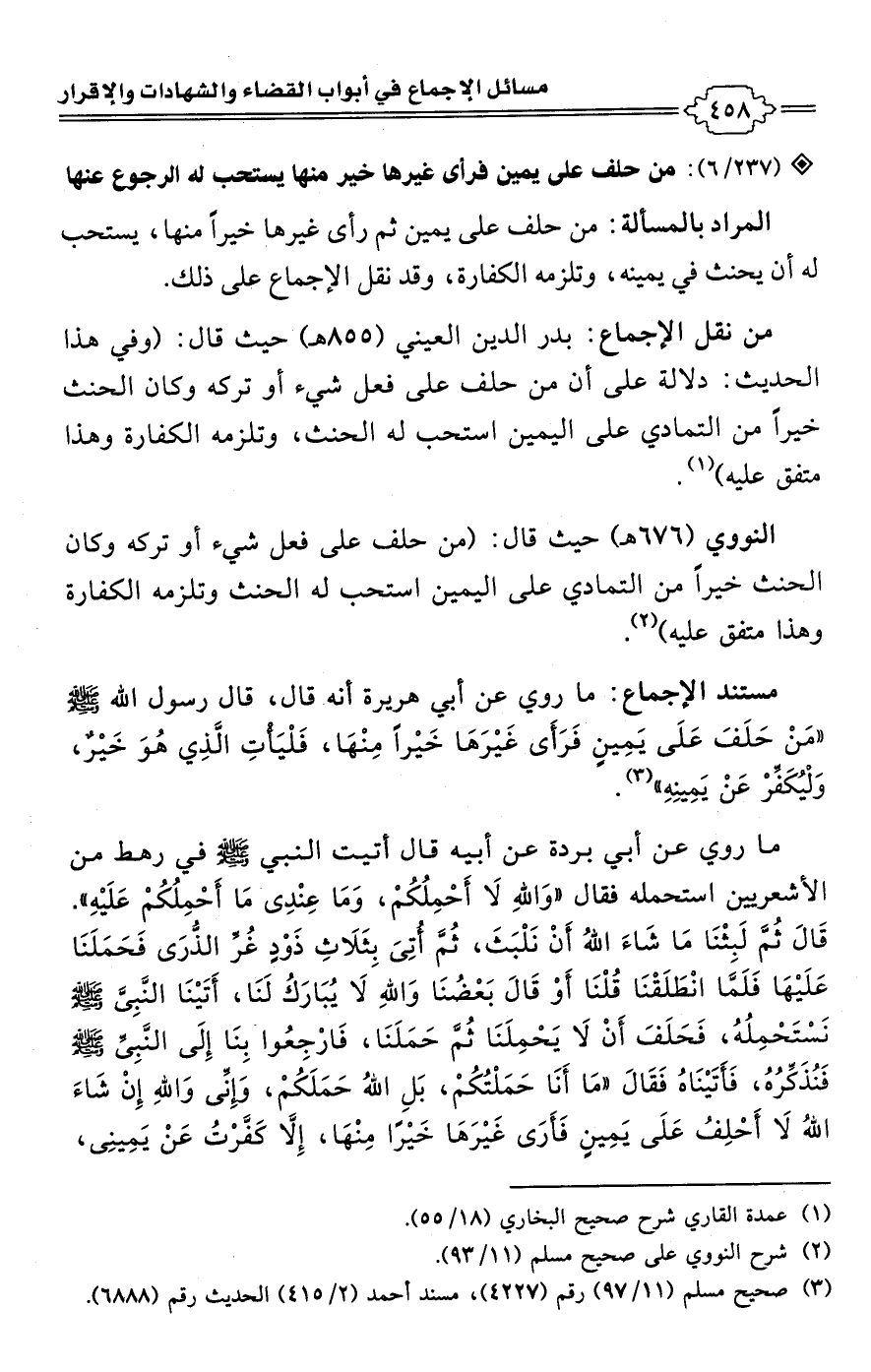 [237/ 6]: من حلف على يمين فرأى غيرها خير منها يستحب له الرجوع عنها