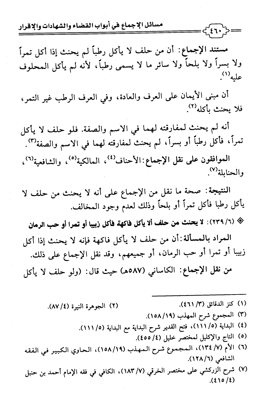 [239/ 6]: لا يحنث من حلف ألا يأكل فاكهة فأكل زبيبا أو تمرا أو حب الرمان