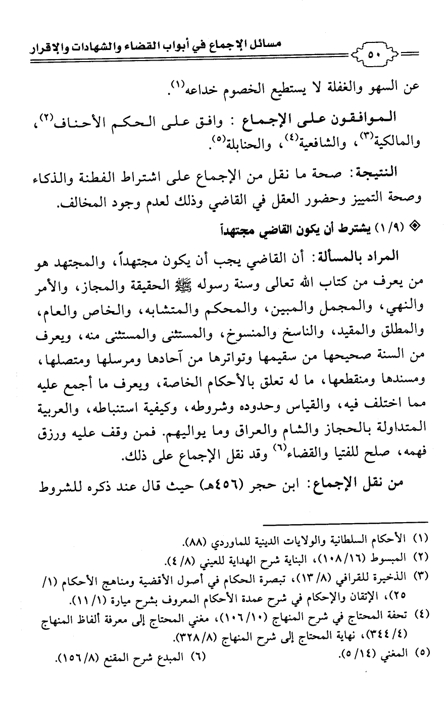 (9/ 1) يشترط أن يكون القاضي مجتهدًا