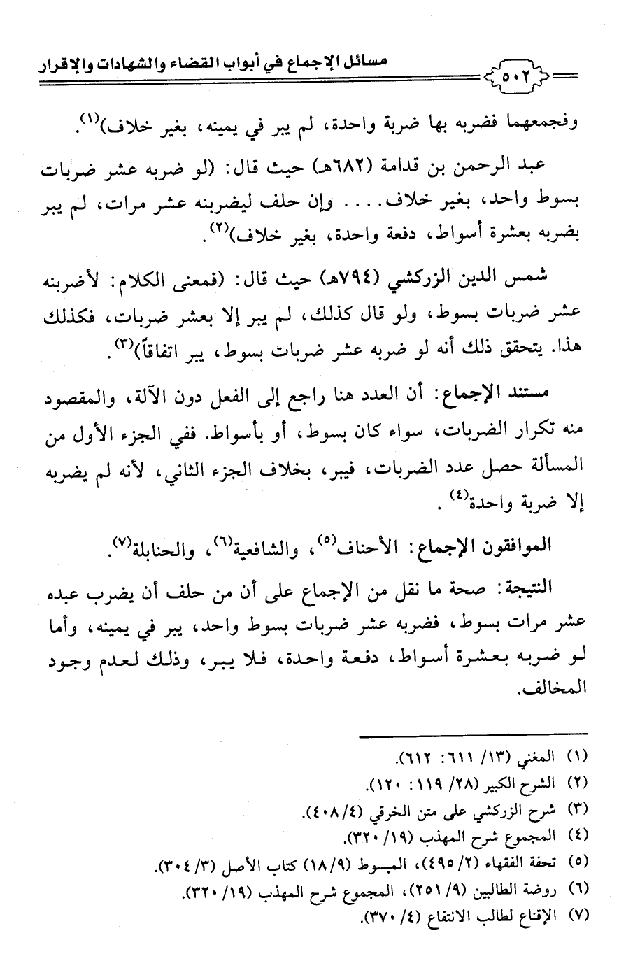 عبد الرحمن بن قدامة (682 هـ) حيث قال: (لو ضربه عشر ضربات بسوط واحد، بغير خلاف. . . . وإن حلف ليضربنه عشر مرات، لم يبر بضربه بعشرة أسواط، دفعة واحدة، بغير خلاف) (¬2).
