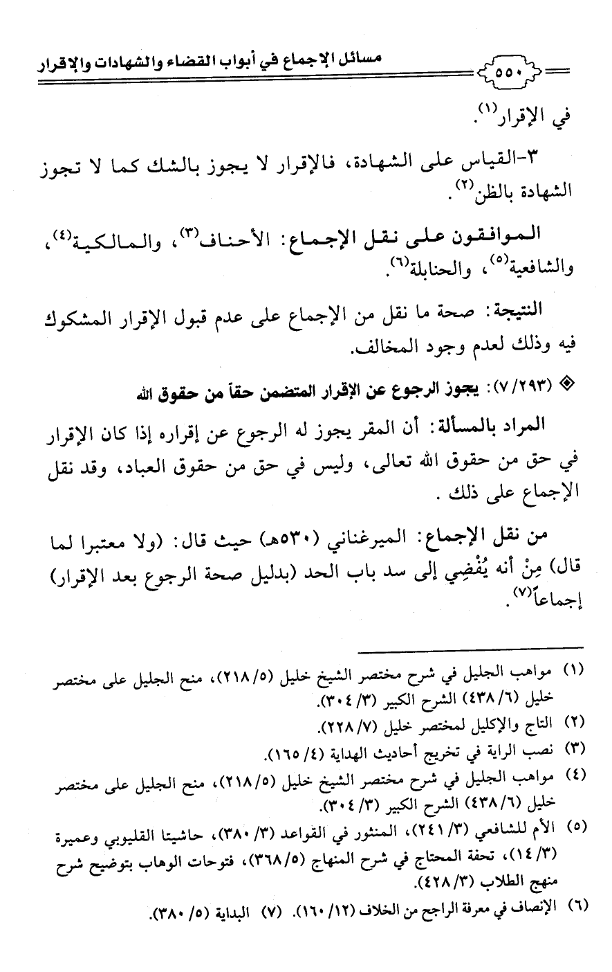 [293/ 7]: يجوز الرجوع عن الإقرار المتضمق حقًا من حقوق اللَّه
