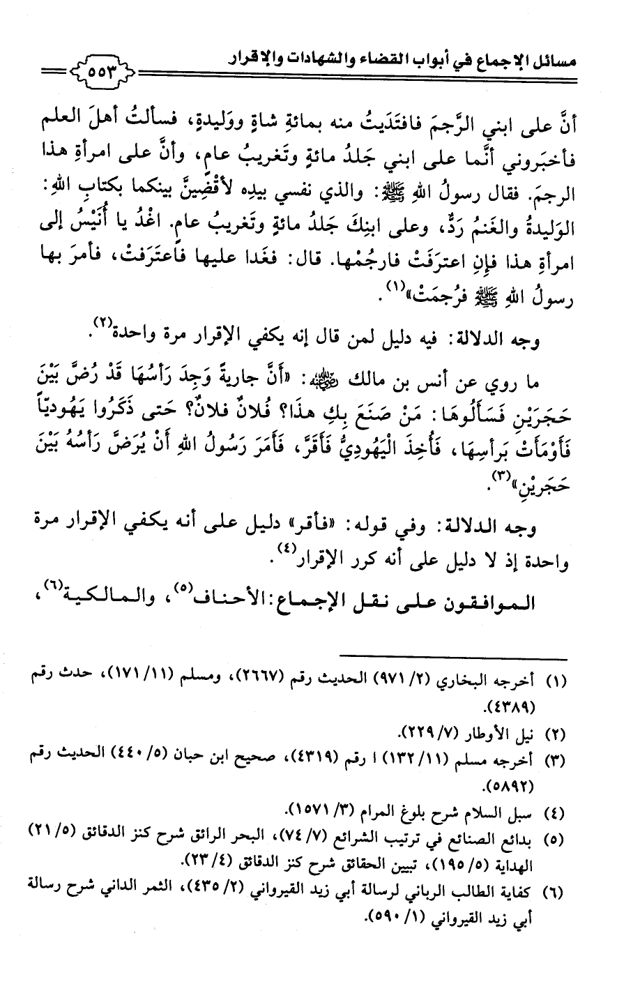 • وجه الدلالة: فيه دليل لمن قال إنه يكفي الإقرار مرة واحدة (¬2).