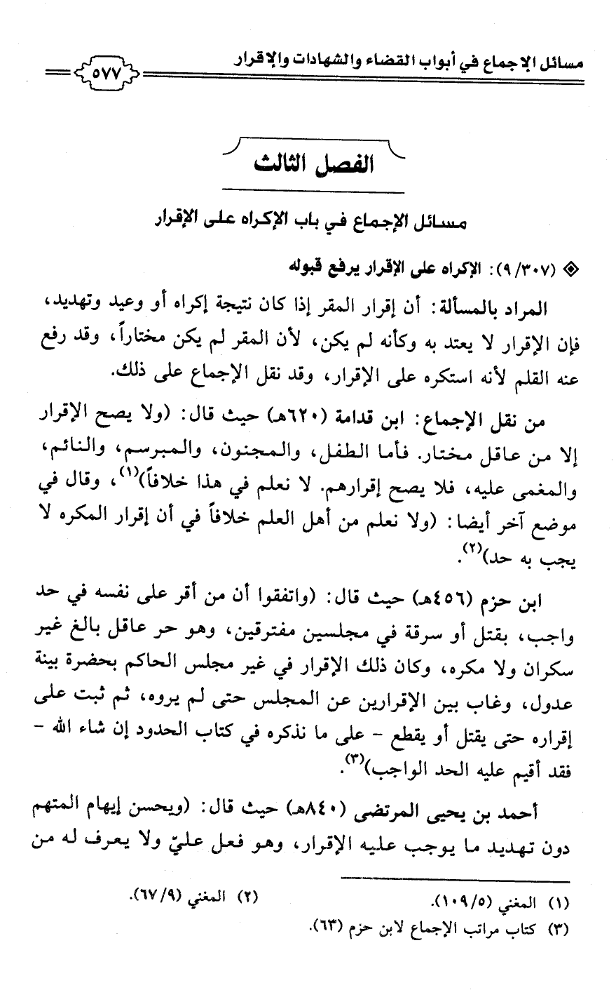 [307/ 9]: الإكراه على الإقرار يرفع قبوله